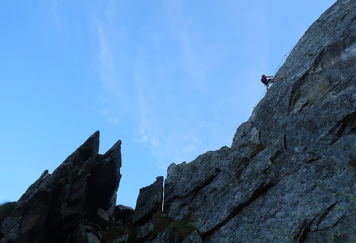 Achtung: Auf stabile und trockene Wetterverhältnisse achten - Regen (Schnee) machen den langen Grat schnell zur unbezwingbaren Rutschpartie!