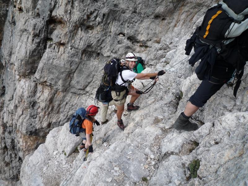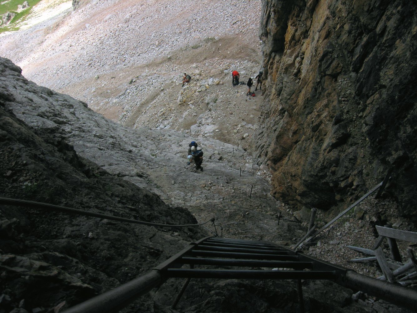 An schönen Wochenenden wird der Berg von unzähligen Klettersteiggehern gestürmt - Steinschlag. Auf sichere Wetterverhältnisse achten.