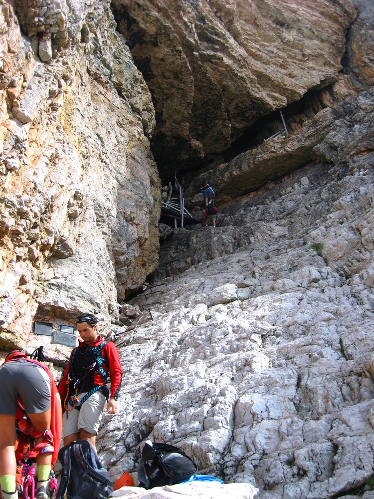 Vom Rifugio Angelo Dibona: Auf dem Weg 403 ins Valón de Tofana (2120 m) aufsteigen und weiter auf Weg 442 Richtung Gallerie del Castelletto zum Beginn der Versicherungen. Vom Ra Nona (etwas längerer Zustieg): Auf dem Weg 412 ins Valón de Tofana. Weiter siehe oben.