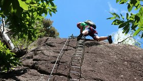 Komplette Klettersteigausrüstung und Helm.