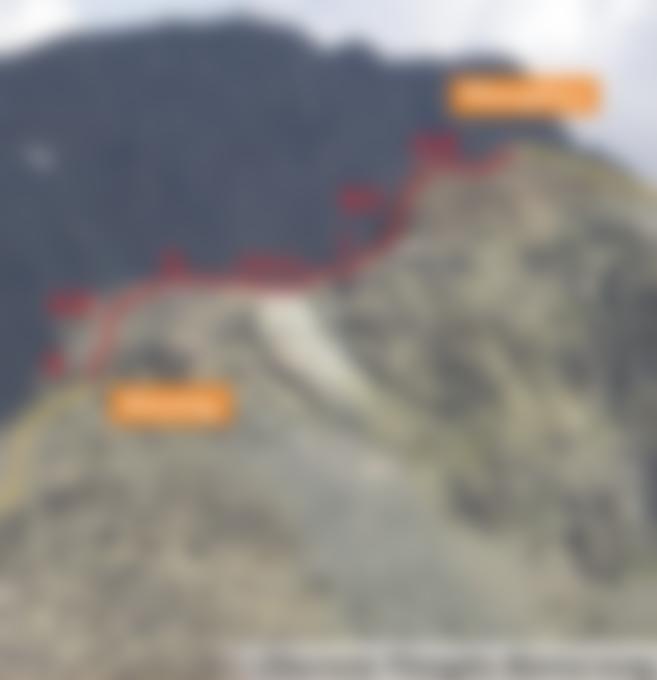 Vom Gipfel über den Normalweg (max. 1) zum Flimjoch. Dort links halten und auf ca. 2650 m absteigen. Hier abermals links halten und zum Viderjoch aufsteigen.