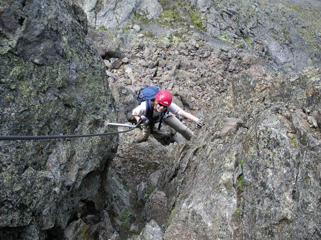 Stand Sommer 2023: Wegen der Sperre des Abstiegsweges muss man den Klettersteig aber wieder abklettern. Status summer 2023: Due to the closure of the descent path, you have to climb down the via ferrata again.