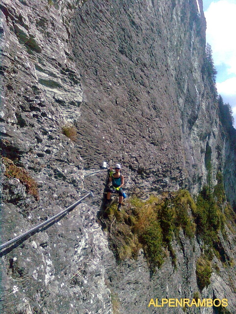 Gut versicherte Steiganlage, tlw. aber etwas weite Abstände.