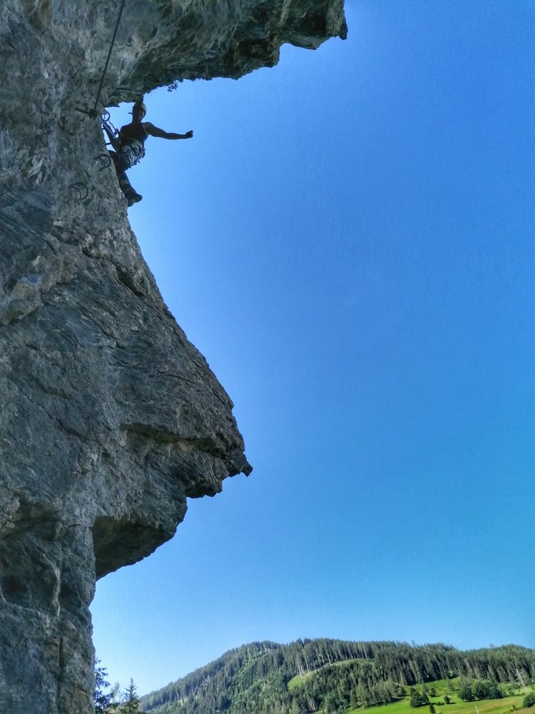 Als Freifall bezeichnet man den Zustand, wenn etwas ohne einmal eine Sache zu berühren vom Anfang bis zum meist tiefen Aufschlagpunkt hinunter fällt. Genau an das denkt man, wenn man ganz oben an der sog. Freifallkante an die Ecke hinaus quert. Der im Jahr 2018 eröffnete Klettersteig ist eine tolle, sehr ausgesetzte Ferrata, die eine ideale Ergänzung zum Kitzklettersteig darstellt. Man kann den Klettersteig perfekt an den Kitzklettersteig anhängen!