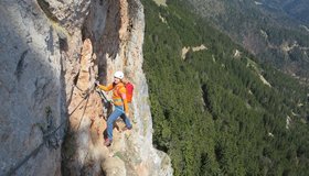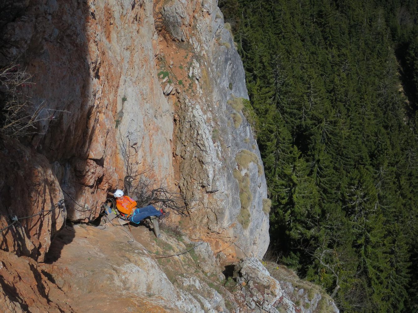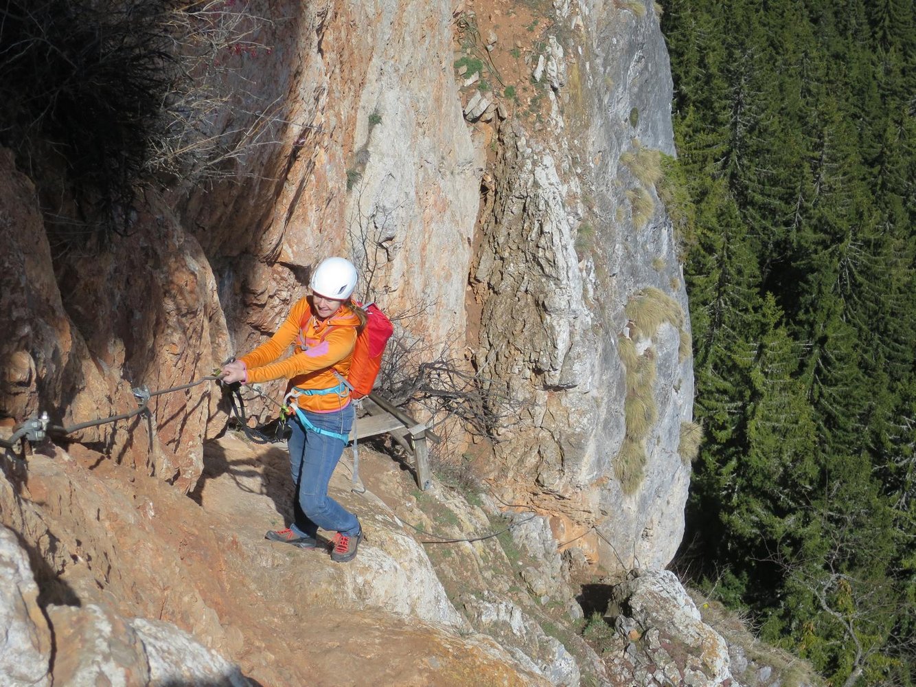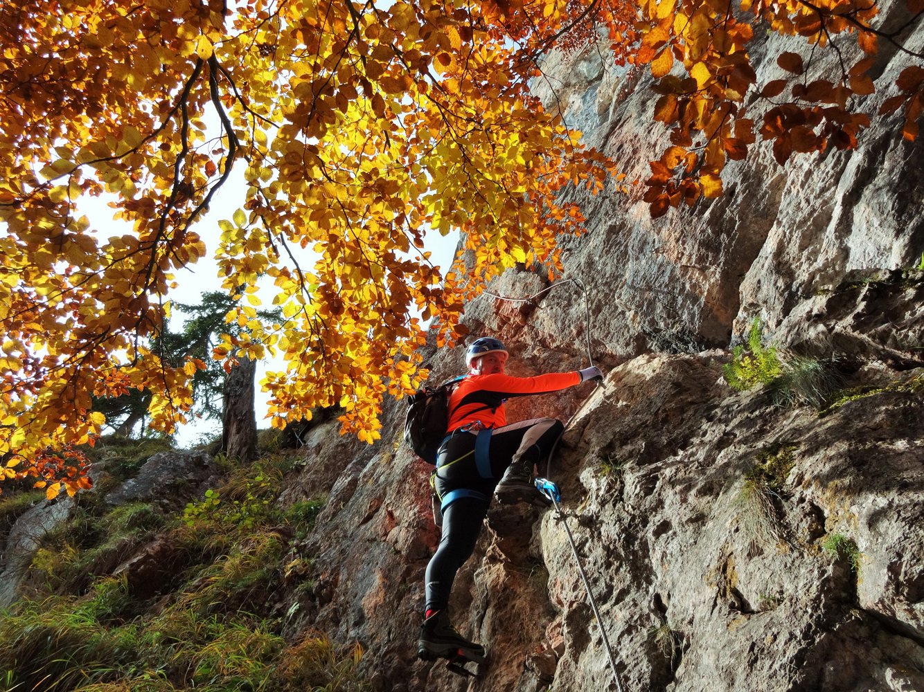 Der Klettersteig führt durch die Gipfelwand der Routen Wand direkt zum höchsten Punkt. Das Frohnleitnerband wurde 1987 erstbegangen, es handelt sich quasi um einen Selfmade-Klettersteig. Zuletzt machten zahlreiche Gerüchte und Schauergeschichten über den Zustand dieser Ferrata die Runde. Der Anstieg verläuft in spannender Routenführung unterhalb des Gipfelkreuzes durch die langgezogene Rote Wand. Der Steig war anfangs schlecht versichert, wurde dann sogar abgebaut und zuletzt wieder saniert. 2022 hat der Steig einen neuen Einstieg bekommen und die Bäume im Einstiegsbereich wurden gefällt, sodass man den Steig jetzt auch leichter findet. 2025 wurde eine Umgehungsvariante zur Schlüsselstelle hinzugefügt. Achtung: Beim Ausstieg müssen einige Meter im steilen Gelände ungesichert überwunden werden!