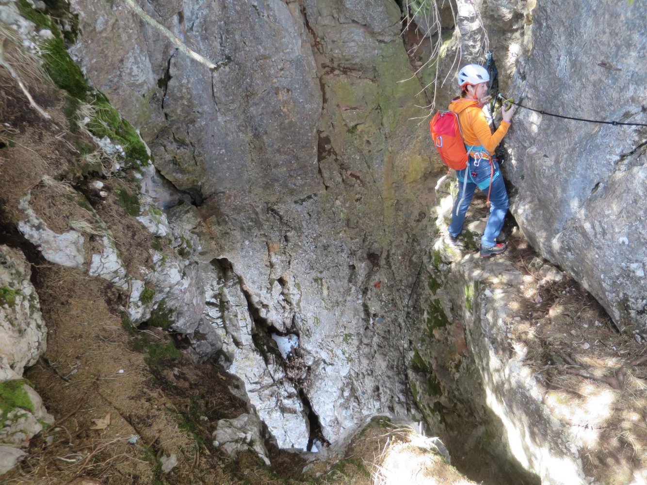 Vom Parkplatz der Roten Wand auf Forststraße in Richtung Buchebensattel, in der ersten Kehre auf gut sichtbaren Steigspuren nach rechts in einem Graben zur nächsten Forststraße aufwärts, dieser nach rechts folgen und auf dem markierten Wanderweg Richtung Tyrnaueralm, bis dieser noch im Wald auf einem Rücken unter dem Gipfel der Roten Wand führt, der Weg geht noch kurz den Rücken hinauf und verlässt diesen bei einer gelben Tafel nach rechts. Hier genau bei einem gelben Wegweiser den Wanderweg verlassen und auf einem Pfad dem Rücken weiter aufsteigen. Es kommt eine Forststraße und gleich (der weg ist links) darüber eine Wiese. Kurz am Wiesenrücken zur Wand hinauf und vor dem Wald rechts einem Weg folgen. Bei einigen Felsblöcken + Steinmann, zweigt links der Weg zum Einstieg ab.