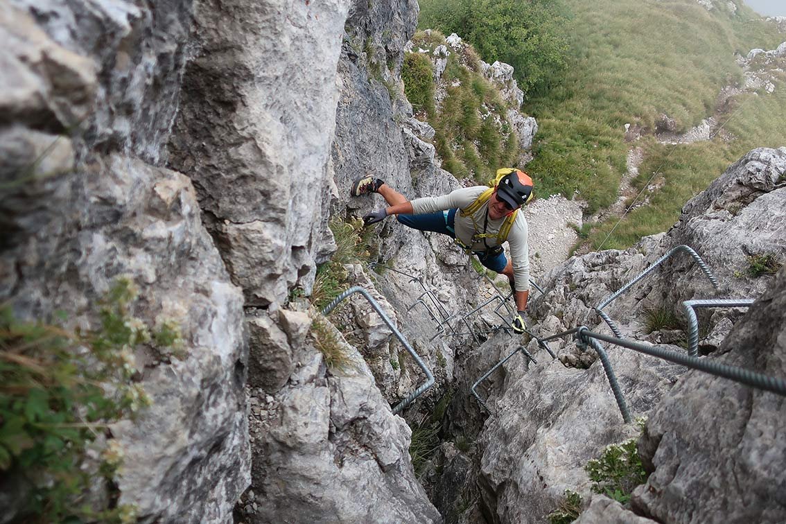 Trotz der vielen Trittklammern ist die Gamma 2 Ferrata immer noch sehr fordernd!