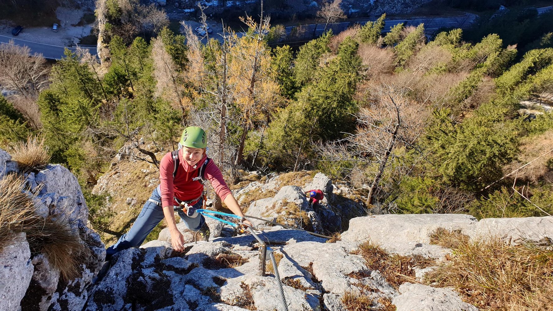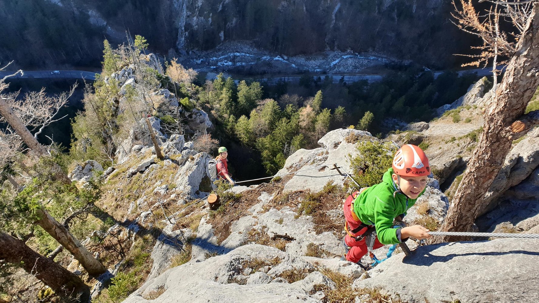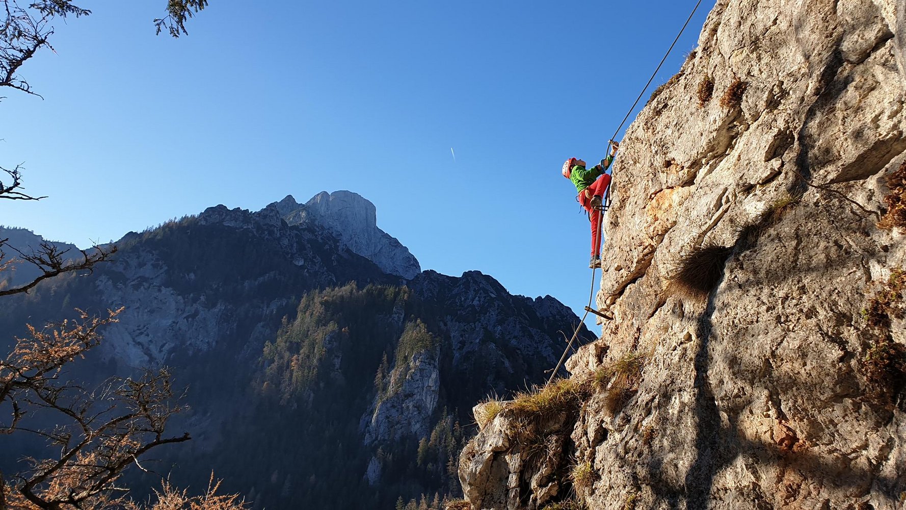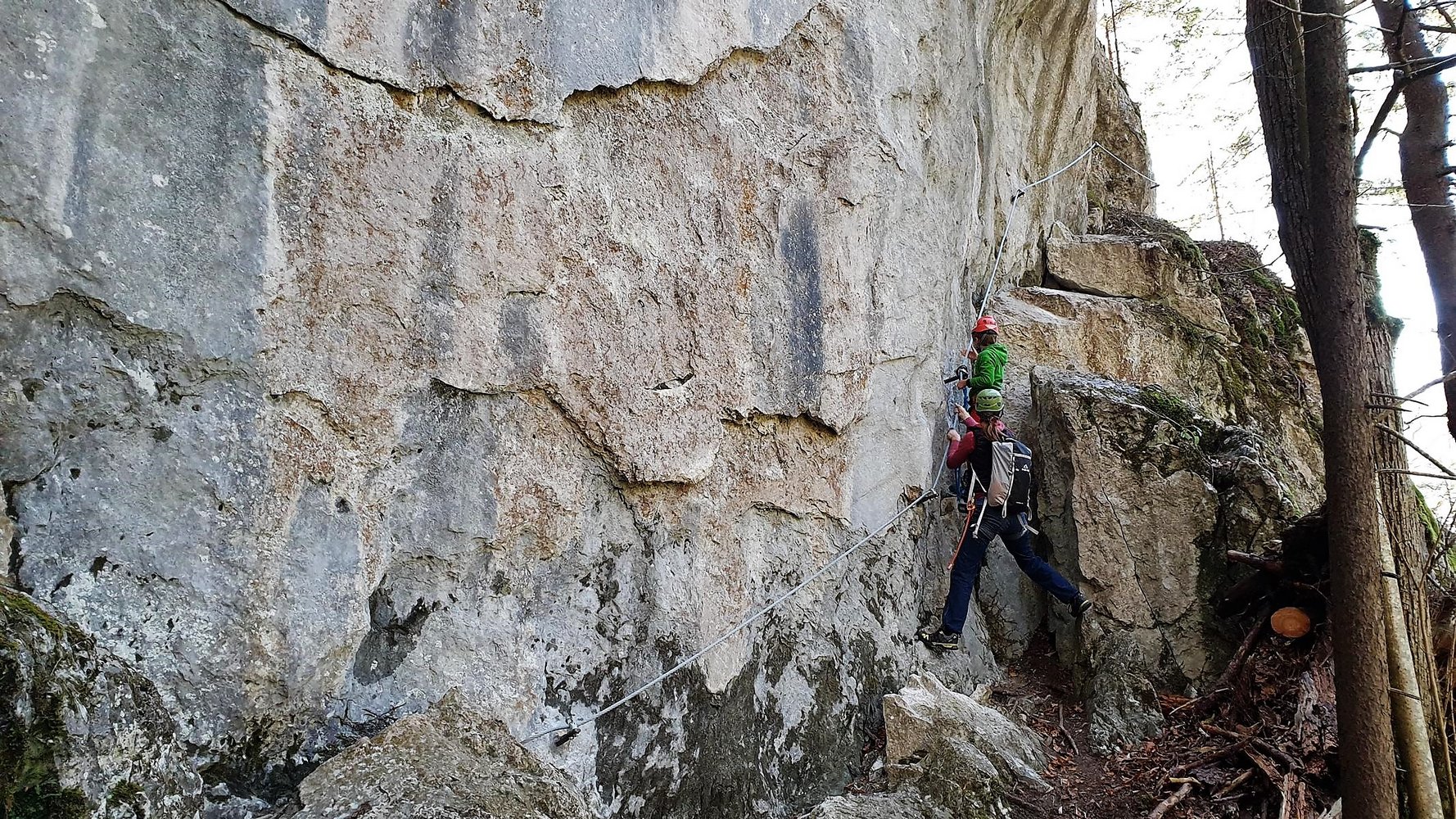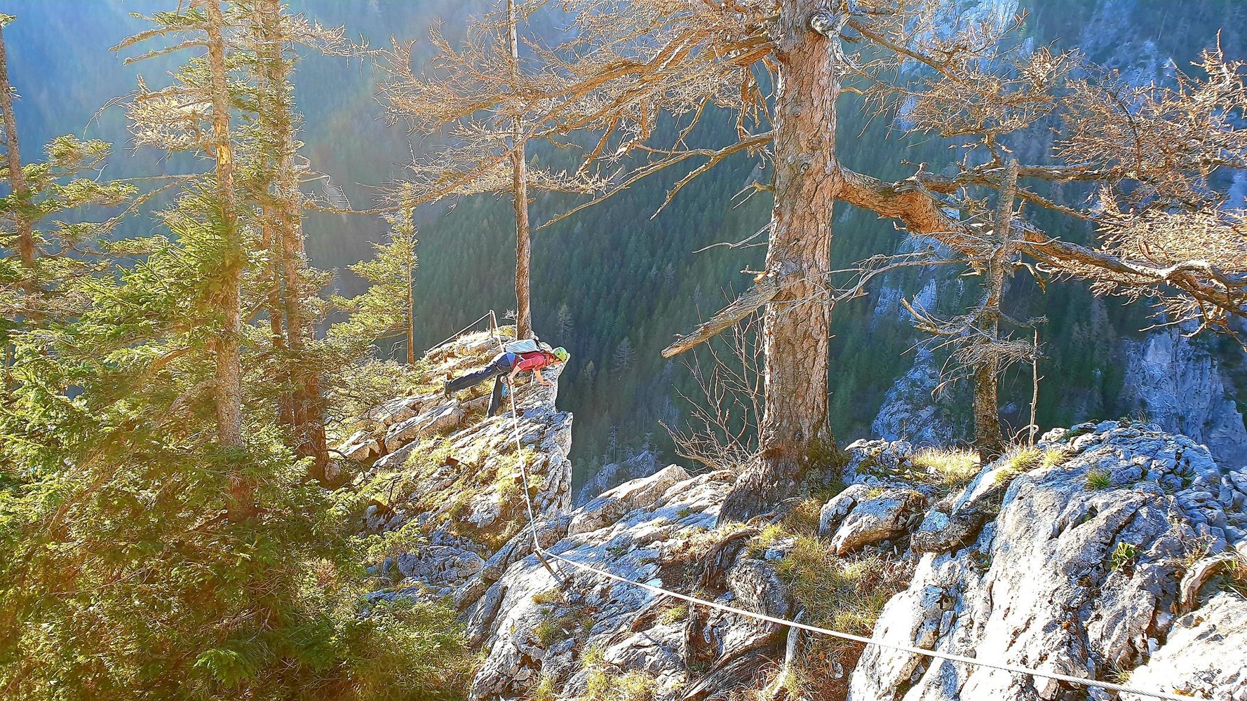 Das Klettersteigset erst nach der versicherten Stelle auf dem Abstiegsweg ablegen!