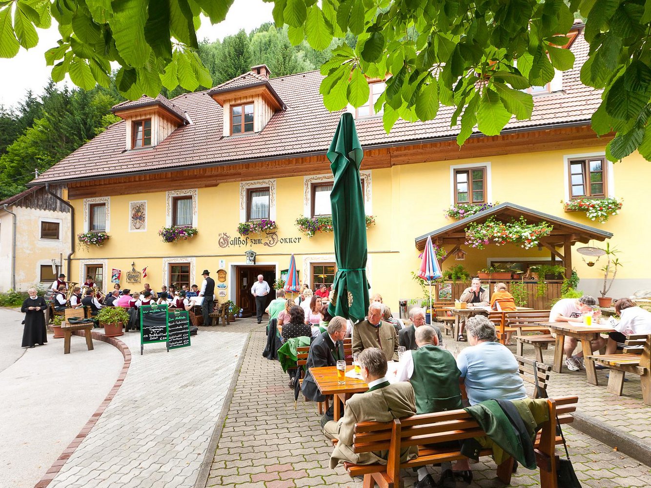 Vom Ausstieg auf dem markierten weg (eine Stelle versichert, A) nach Johnsbach absteigen und auf der Straße zurück zum Ghf. Donner. Tipp: Er hat eine sehr gute Küche.