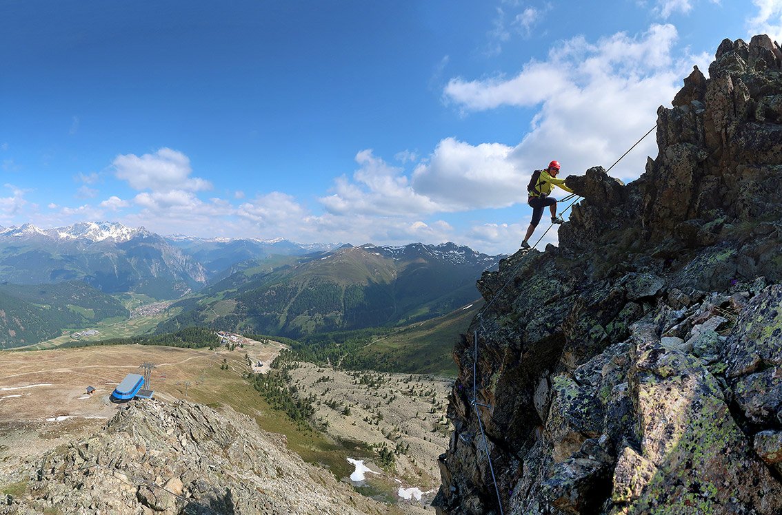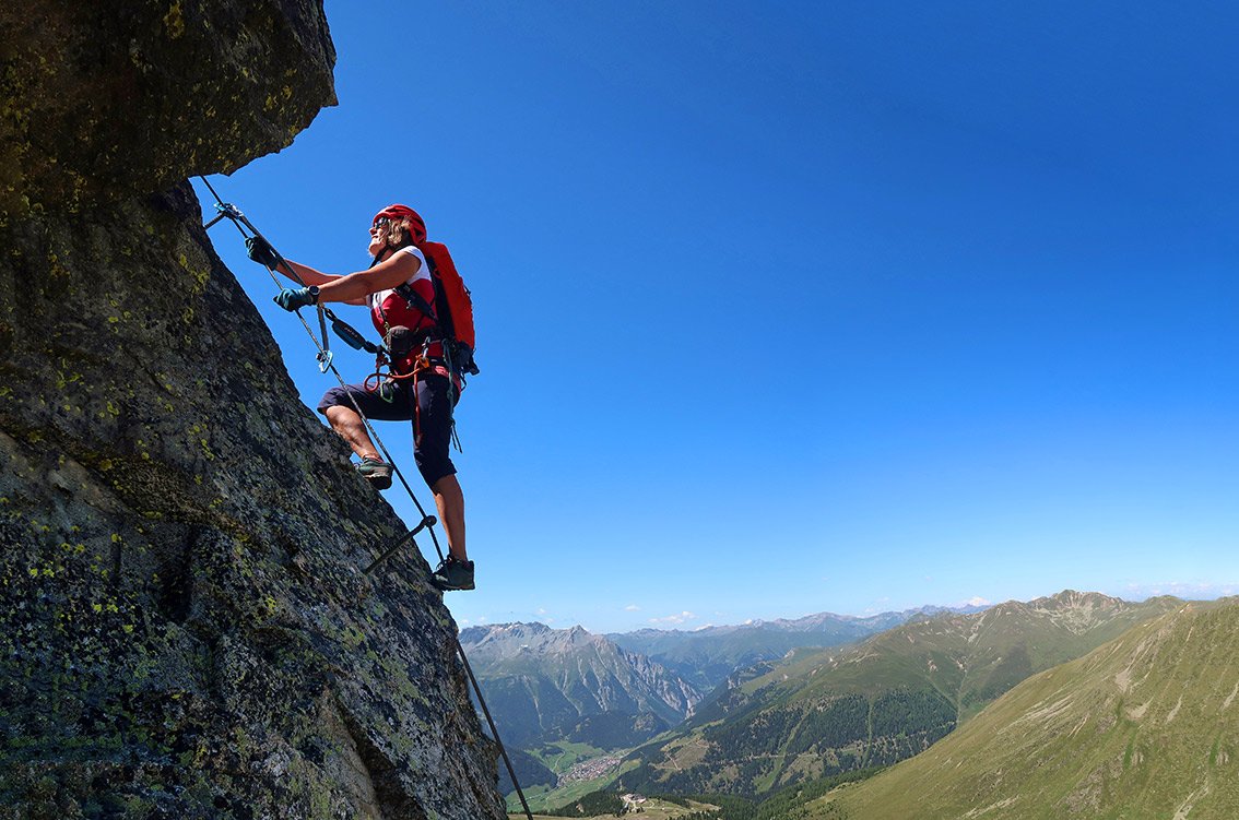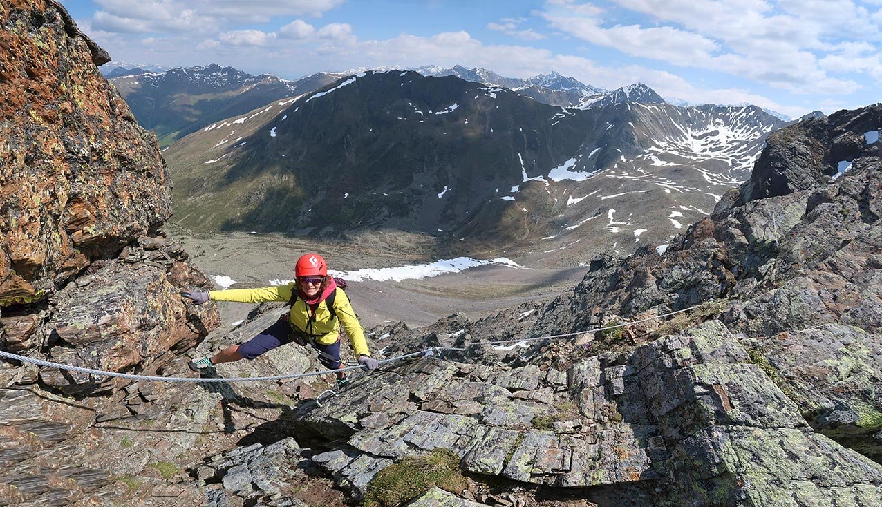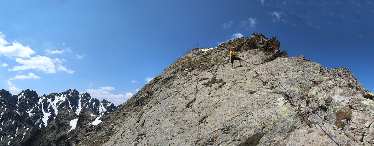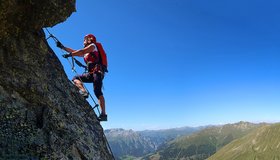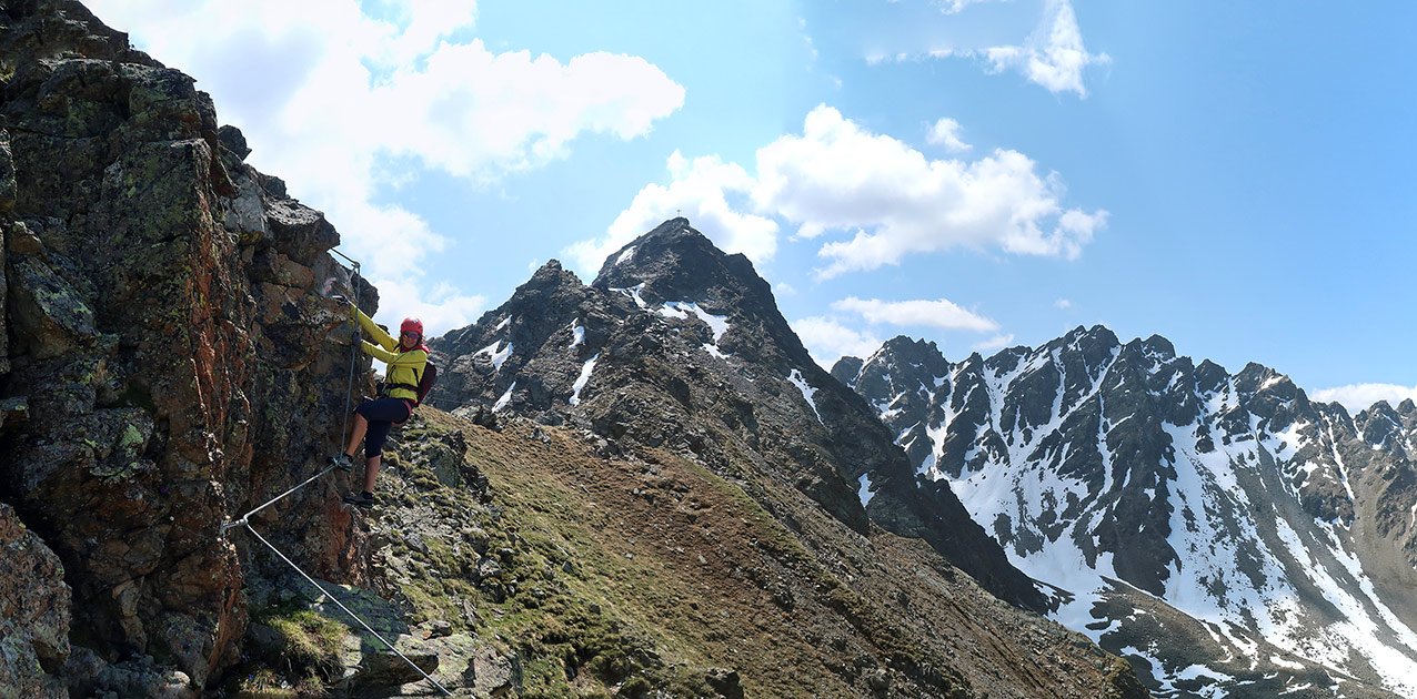 Für Klettersteigeinsteiger sind deswegen die kürzeren Varianten mit Abstieg (über die Notabstiege) vom Goldspitzl bzw. maximal bis zum Ausstieg kurz vor der Biwakschachtel empfehlenswert (siehe Topo).