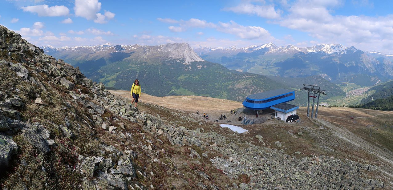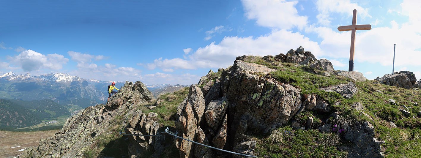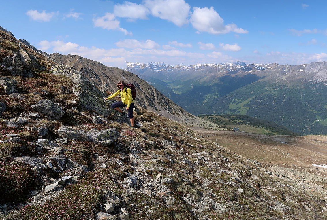 Wenn man eine der beiden verkürzten Varianten mit Abstieg auf einem der beiden Notabstiege wählt: Dann über die ausgeschilderten Wege westlich ins Nauderer Gaisloch absteigen und dort retour zur Zirmbahn-Bergstation bzw. zur Station Bergkastel.