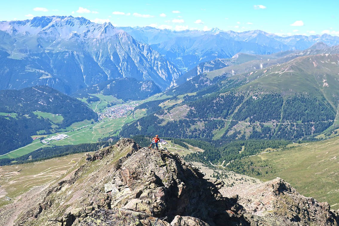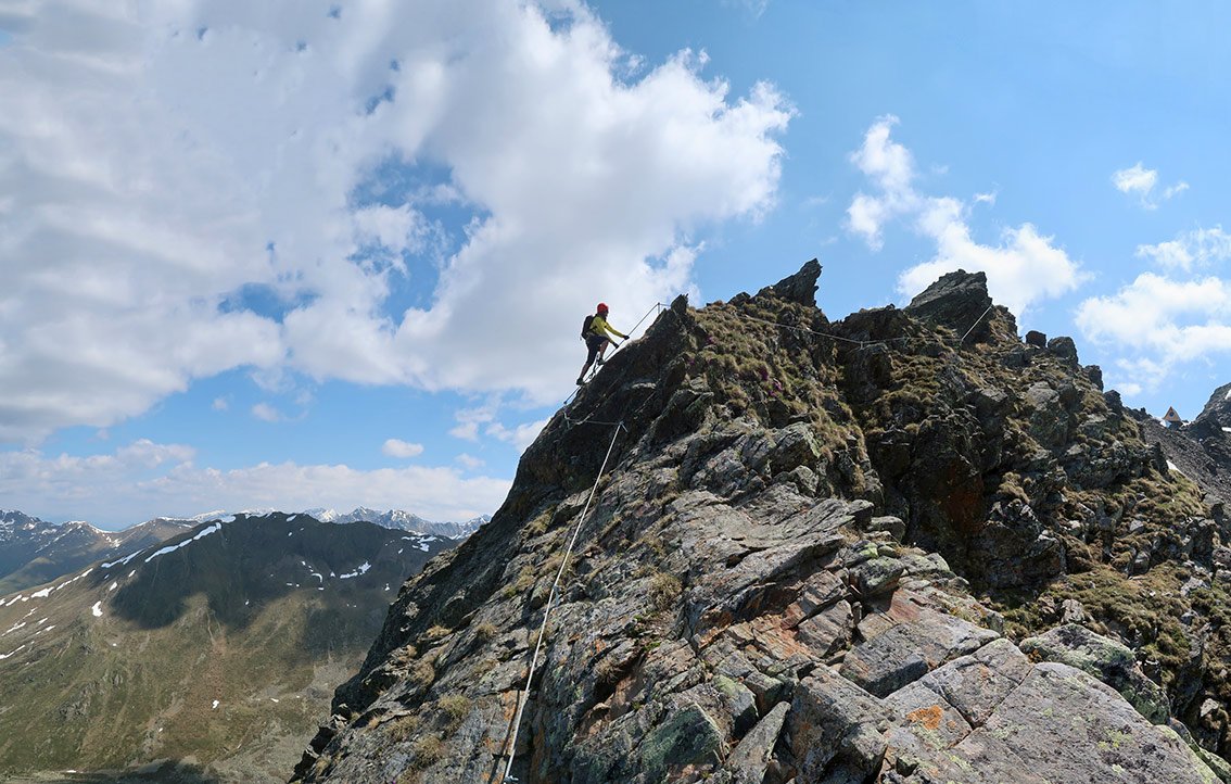 Von der Bergstation der Zirmbahn (Sessellift) folgt man dem markierten Pfad hinauf zum Nordwestgrat. Dort befindet sich der Einstieg. Anmerkung: Wenn die Zirmbahn nicht fährt (was aber selten der Fall ist), muss man von der Bergstation der Bergkastelseilbahn zusteigen = Plus 318 Hm / 45 Minuten bis 1 Stunde Mehraufwand.