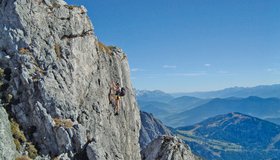 Meist klettert man zuerst den Grandlspitz-Klettersteig und geht von der Taghaubenscharte weiter zum Gipfel der Taghaube - ein direkter Abstieg führt dort hinunter zur Erichhütte.
