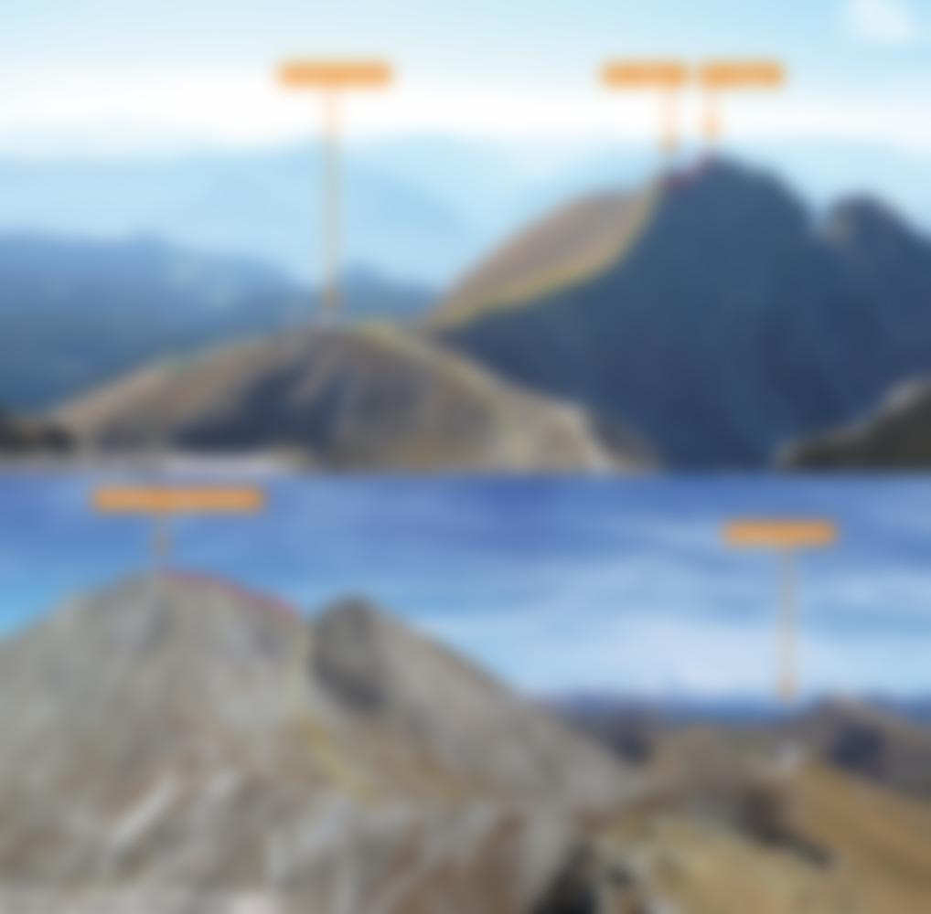 Verdinser Plattenspitze (120 Hm, ½ Std., B u. 1): Von der Scharte durch eine Rinne (A) nordseitig auf den Grat, und diesem stellenweise versichert (bis B) entlang, bis man wieder auf die Nordseite kommt. Es folgt eine längere Gehpassage, die von einer Platte (A) unterbrochen wird, bevor es wieder hinauf zum Grat geht (Achtung: Nicht den Wegspuren an der Nordseite geradeaus folgen!). Über eine letzte kurze Felsstufe (1) klettert man am Schluss auf den Gipfel.