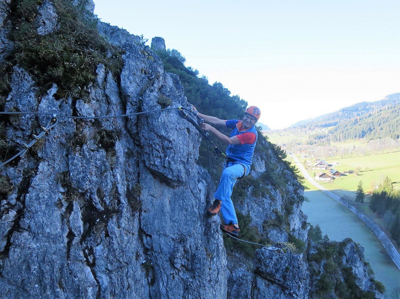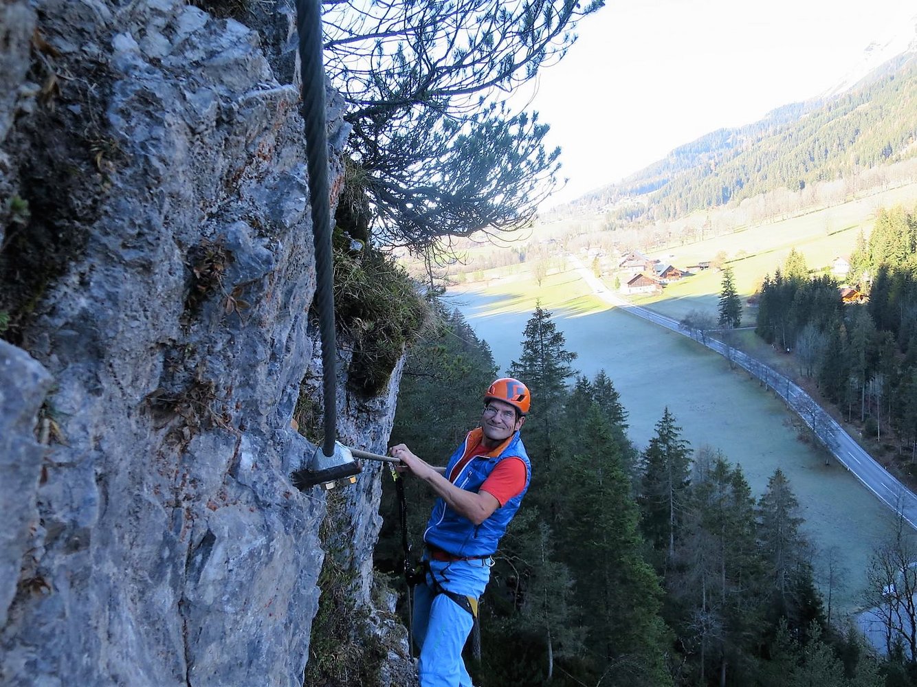 Komplette Klettersteigausrüstung und Helm, evtl. Klettersteighandschuhe. Für schwächere Klettersteiggeher und Kinder ein Sicherungsseil.