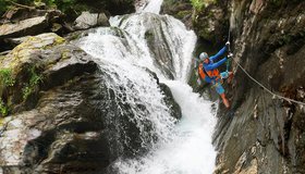 Diesen Klettersteig nicht bei Hochwasser und Gewittergefahr klettern!