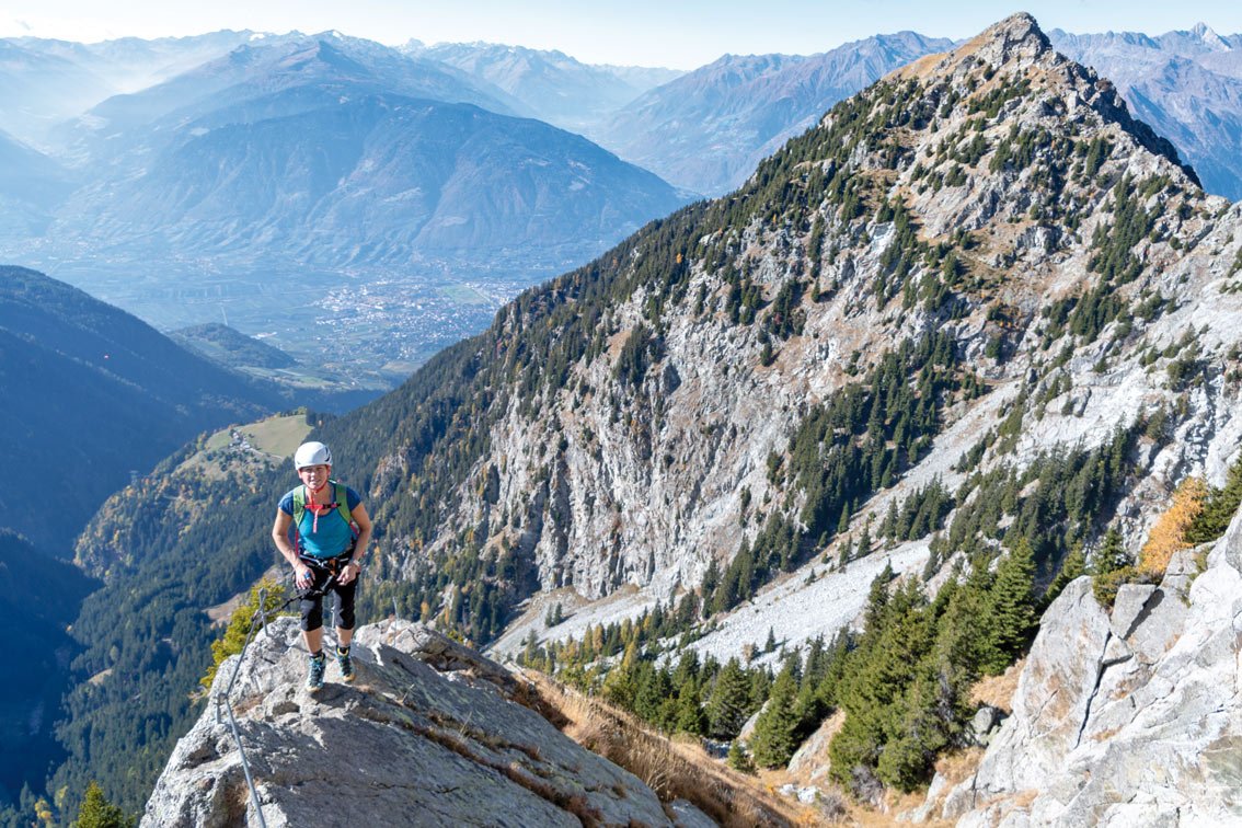 Heini Holzer war ein Südtiroler Alpinist, der sich vor allem durch die Skibefahrung zahlreicher Steilwände einen Namen gemacht hat. Auch im Nahbereich des nach ihm benannten Klettersteiges hat er seine Spuren im steilen Schnee hinterlassen – er fuhr am 13.5.1971 auf Skiern an der Südwestwand des Kleinen Ifingers ab. Die lange Ferrata ist mit ca. 500 Hm und 1000 Metern Stahlseil ein nicht allzu schweres, aber oft unterschätztes Unternehmen. Im unteren Teil gibt es ein paar Vertikalpassagen, die nach oben hin immer spärlicher werden, man geht oft seilgesichert am steilen Berghang. Der echte Felsartist wird dort nicht viel Freude haben. Wer aber einen mittelschweren, sehr langen Genussklettersteig mit perfektem Ausblick auf Meran und die umliegenden Berge sucht, kann von einem unvergesslichen Tourentag ausgehen.