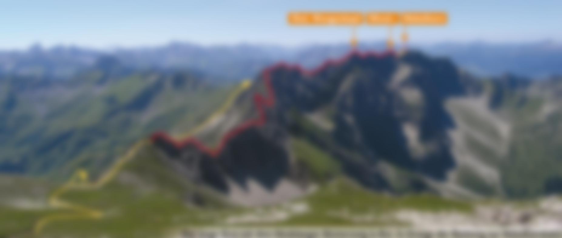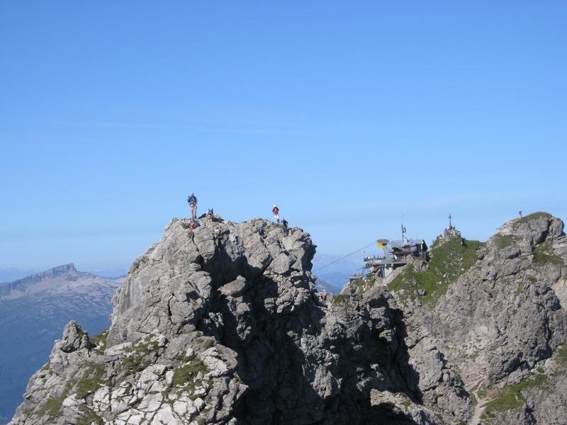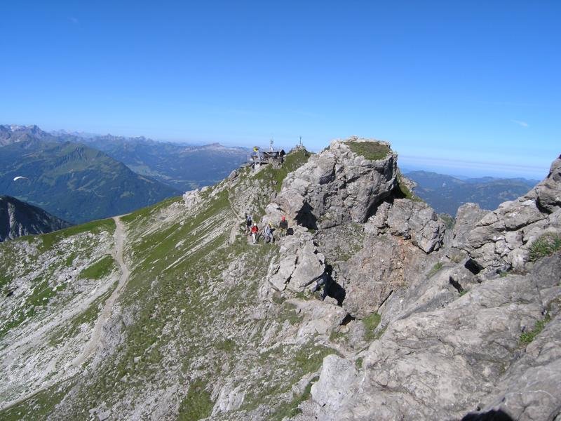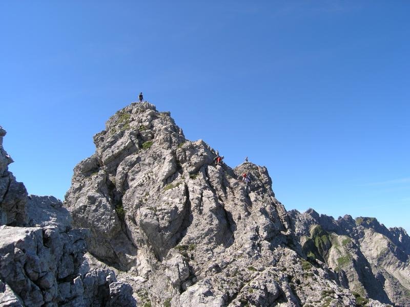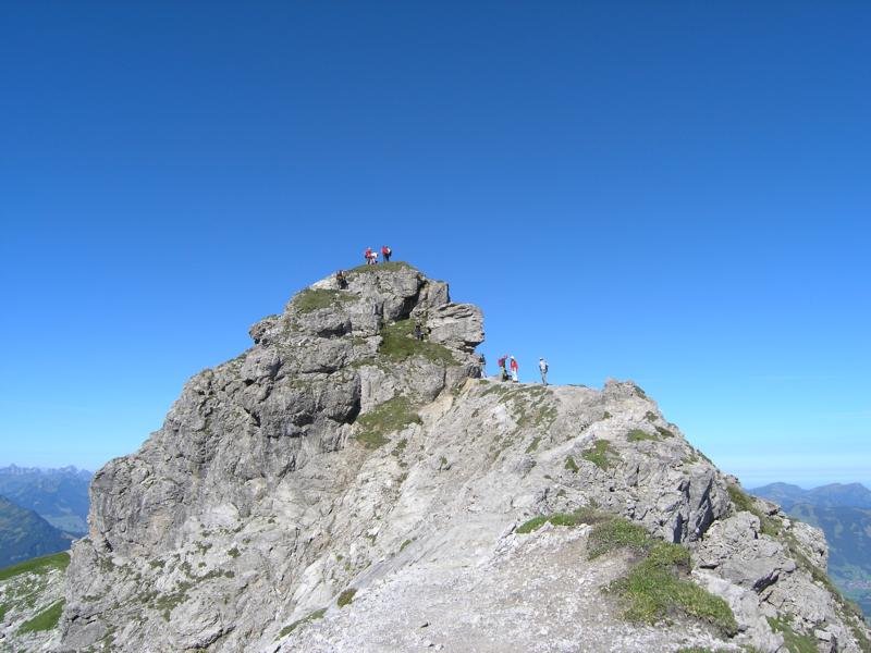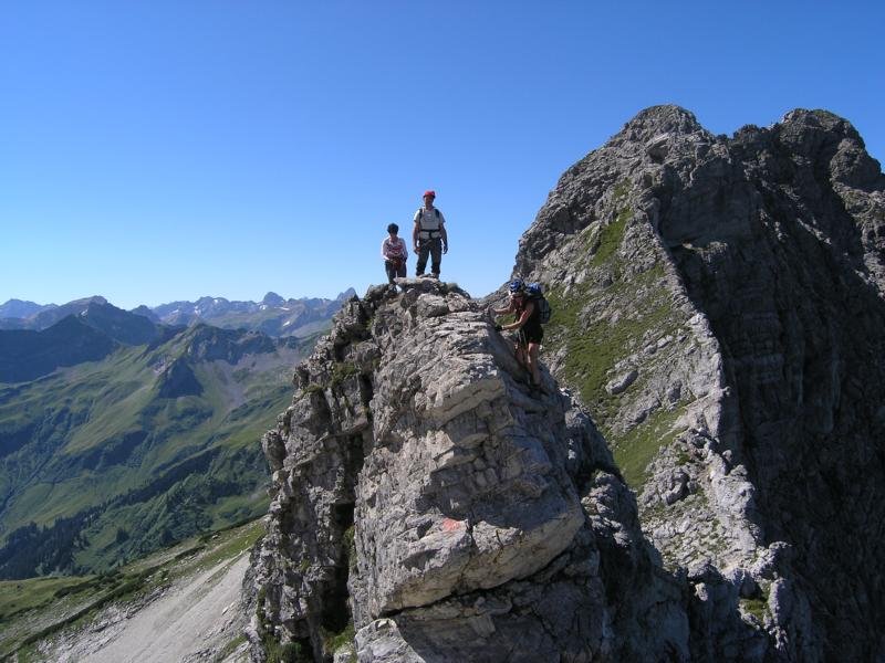 Von der Bergstation der Nebelhornbahn (am besten dort anseilen) folgt man dem Grat in östlicher Richtung bis man über die ersten Türme klettern muss .