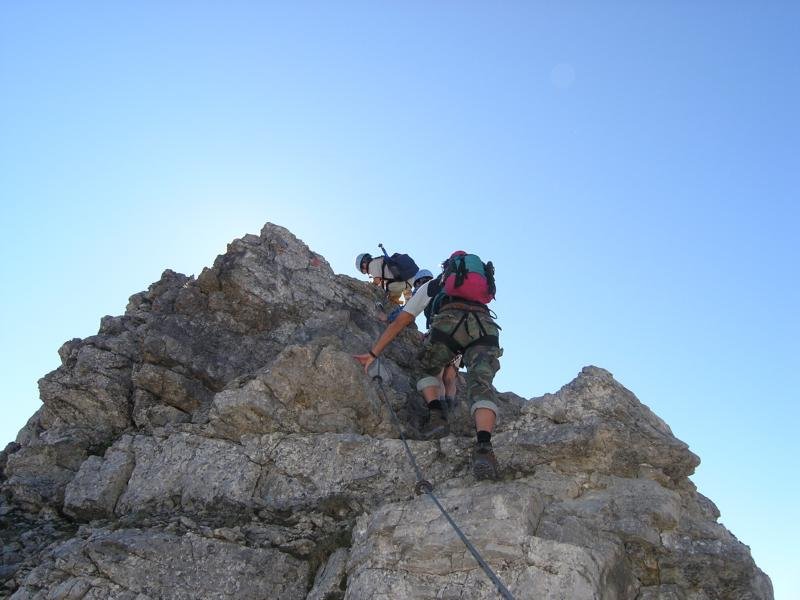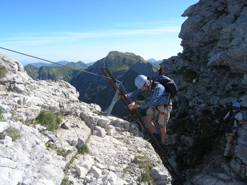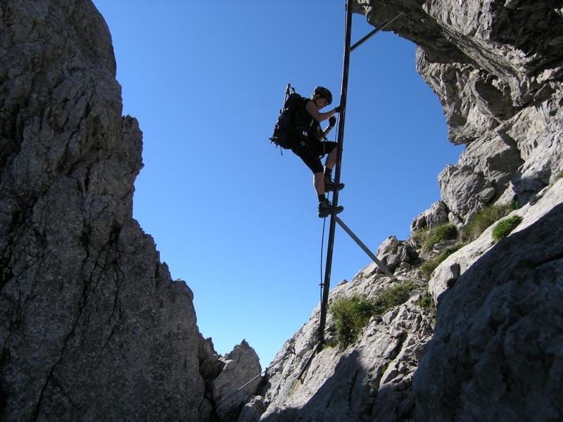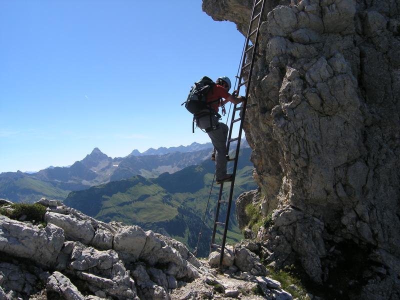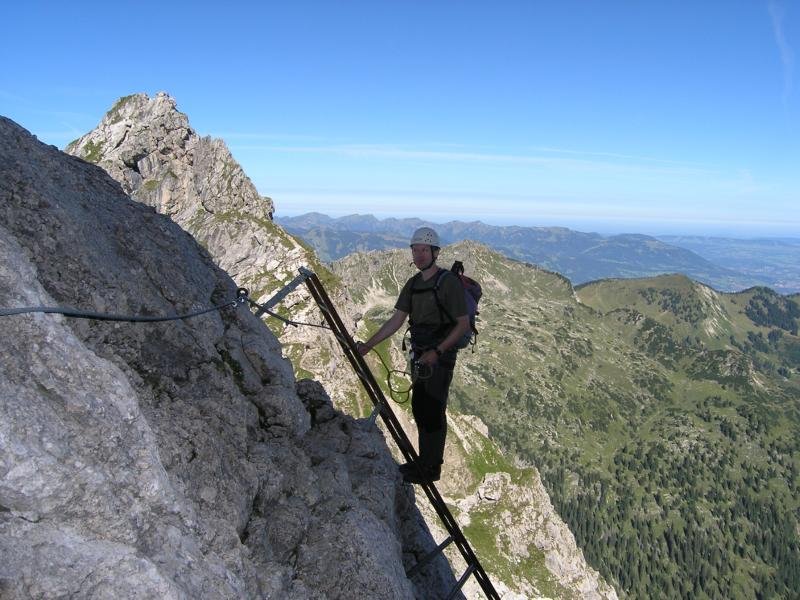 Ferrata-Fantastico, mehr fällt einem spontan meist gar nicht ein, wenn man auf dem Großen Daumen sitzt und auf den fast 4 km langen Hindelanger-Klettersteig zurückblickt. Ein Grat voller Gegensätze - steile und lange Leitern wechseln sich mit luftigen, fast nicht enden wollenden Felsgratpassagen ab. Der Blick reicht von der Zugspitze bis zum Bodensee - was will man mehr! Beim Hindelanger-Klettersteig gibt es auch eine kleine Schnupperrunde, die jedoch auch nur geübten Ferratisten zu empfehlen ist - für ungeübtere Klettersteiggeher auf jeden Fall ein Sicherungsseil mitnehmen, da auch die Schnupperrunde teilweise sehr ausgesetzt und daher nicht ganz ungefährlich ist.