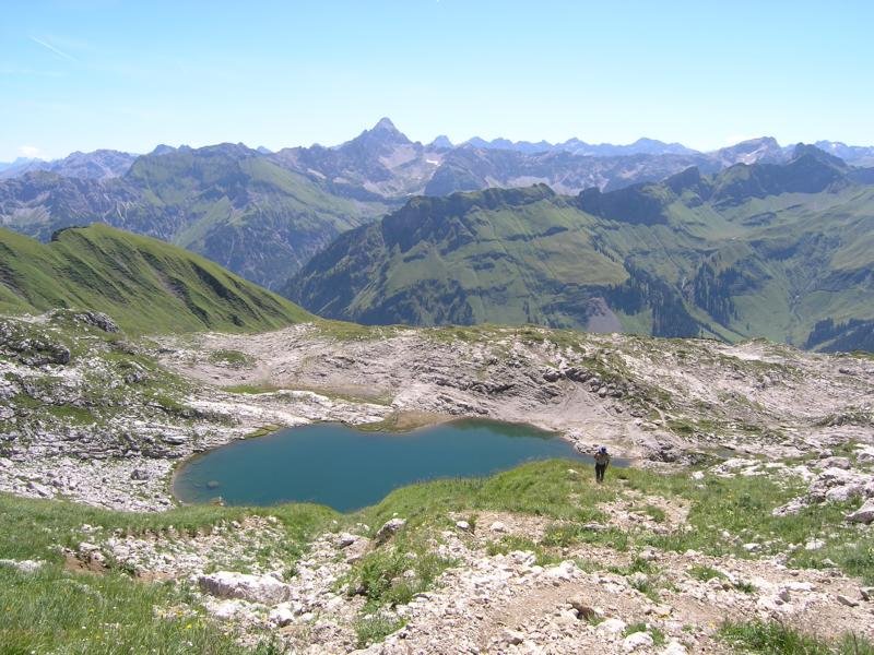 Vom Gipfel des Großen Daumens wieder zurück zum Sattel und hinunter zum Laufbichelsee. Von diesem entlang des Wanderweges zurück zur Mittelstation.