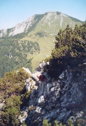 Vom Parkplatz "Im Winkel" auf der Forststraße vorbei an der Johannsenruhe taleinwärts. Im Wald in einigen Serpentinen empor und in der sogenannten Karkehre die Forststraße verlassen. Auf Weg 664 über ein Schuttfeld ansteigend zum Einstieg (N 46°26'26,0", O 14°10'11,8").