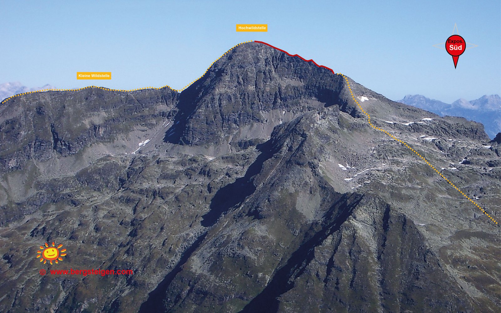 Der Südgrat der Hochwildstelle ist kein Klettersteig im herkömmlichen Sinn. Da er jedoch von der einschlägigen Literatur zu den Klettersteigen gezählt wird, wollen auch wir ihn hier vorstellen.