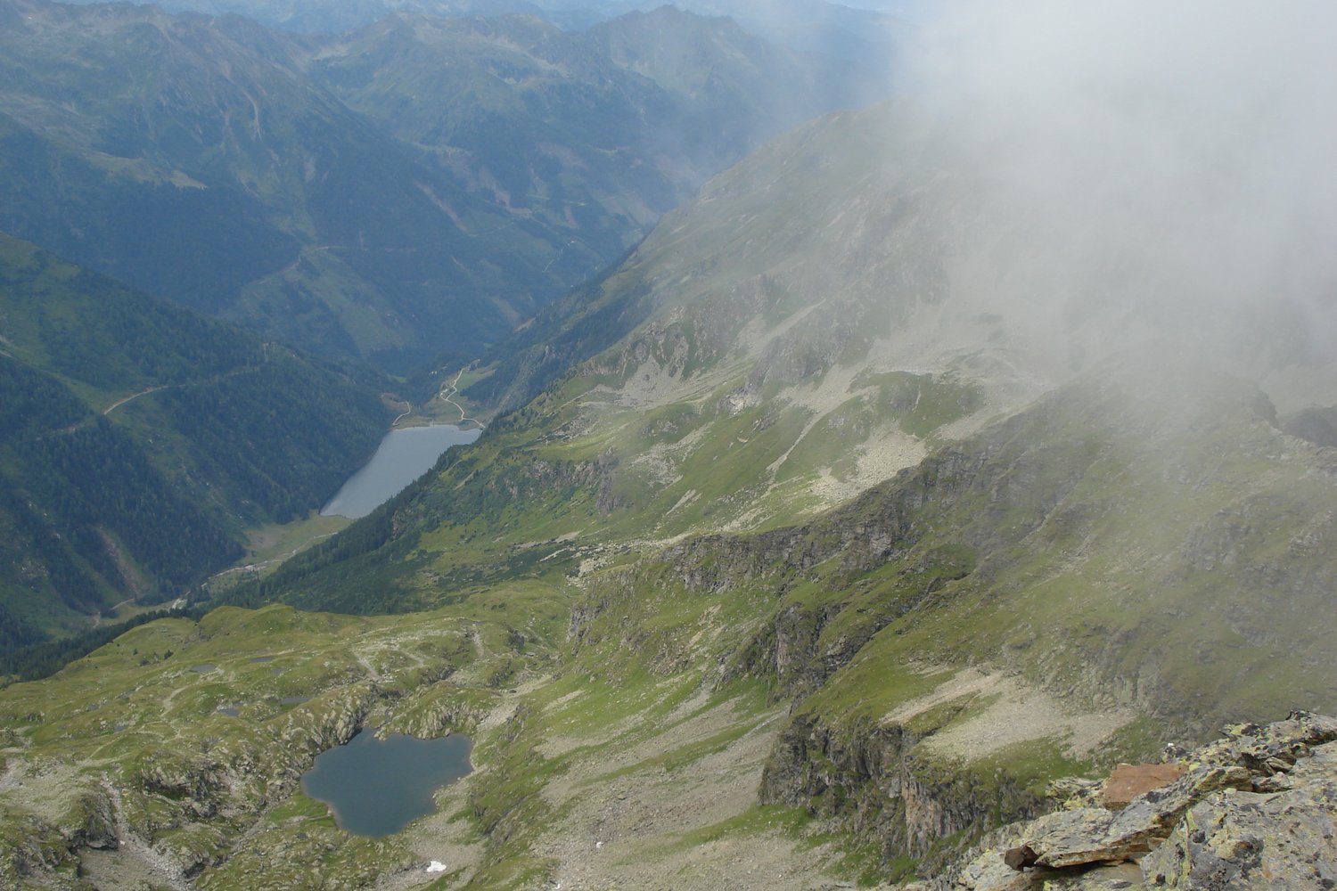 Dort links halten und bis zu einer Bachquerung vor einer Gegensteigung absteigen. Am anderen Ufer kurz hinauf und dort rechts schlechten Markierungen folgend zur verlassenen Neualm (1.849 m) absteigen. Dort dem Wegweiser Richtung Riesachsee folgen und bei der Kerschbaumeralm (1.356 m) auf den Aufstiegsweg treffen. Weiterer Abstieg über diesen.