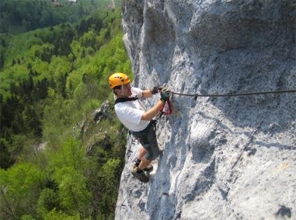 Komplette Klettersteigausrüstung und Helm.