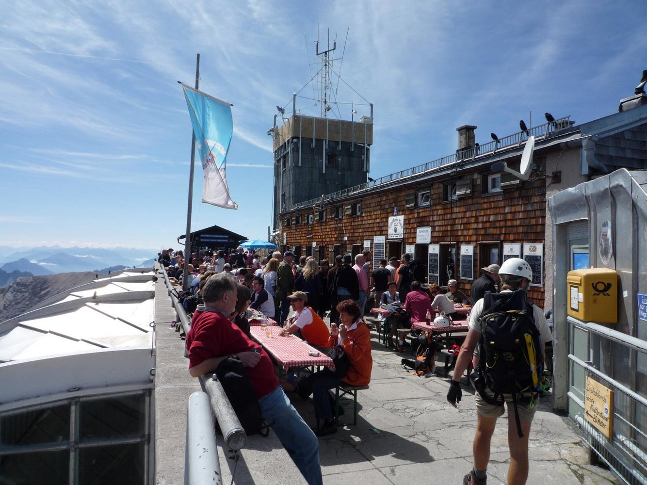 In der Regel fährt man mit der Zugspitzbahn hinunter zum Eibsee und mit der Bahn zurück nach Hammersbach. Hartgesottene und konditionsstarke Geher steigen über den Stopselzieher- Klettersteig zur Wr. Neustädterhütte, von dieser geht es dann zurück zum Eibsee – 2200 Hm Abstieg (siehe bei Tour Stopselzieher)!