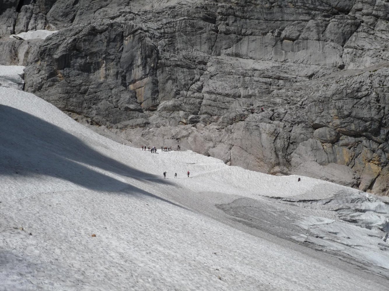 Staupunkt: Der Übergang vom Gletscher zum Felsen (aktuell nur ein Übergang offen), dort staut es sich oft sehr, auch ändern sich die Verhältnisse jedes Jahr (Klimaerwärmung, das Eis wird weniger, die Felspassage länger).