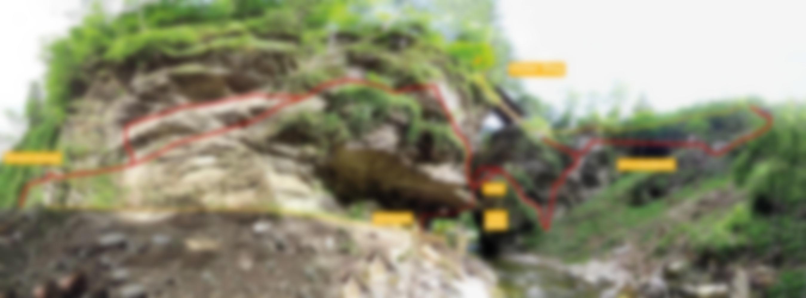 Vom Parkplatz über die Straße zum bereits sichtbaren Südeinstieg. Für den Nordwesteinstieg folgt man der alten, tiefer gelegenen Straße noch 2 Min. durch die Klamm nach Norden.