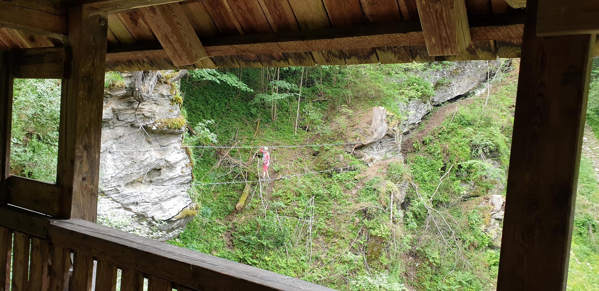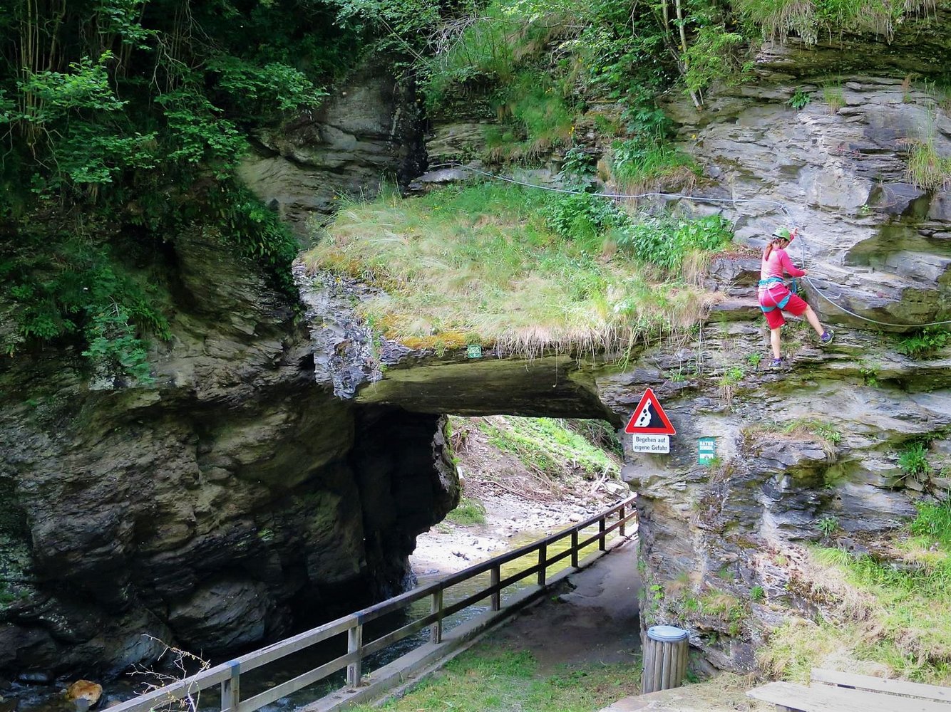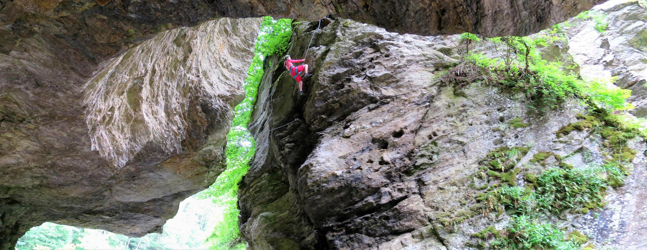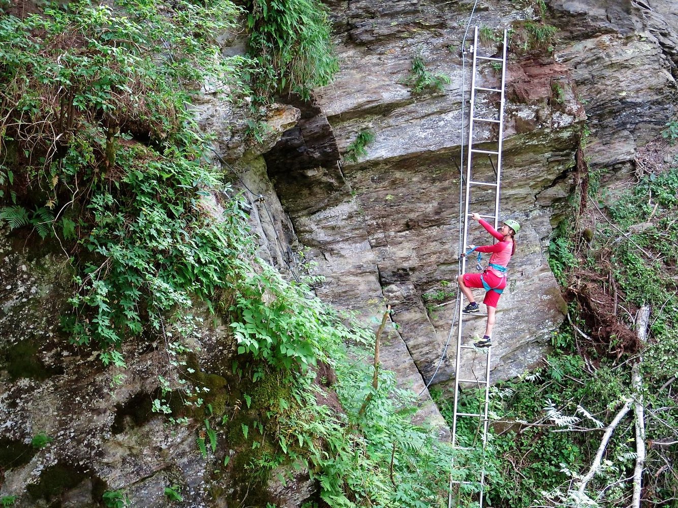 Wer den Notausstieg vor der oberen langen Steigbrücke nimmt, kann die Gesamtschwierigkeit auf C reduzieren.