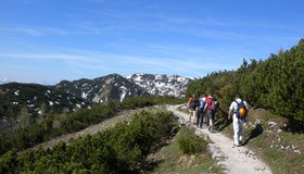 Vom Gipfel auf dem Wanderweg zurück zur Bergstation der Feuerkogel-Seilbahn.