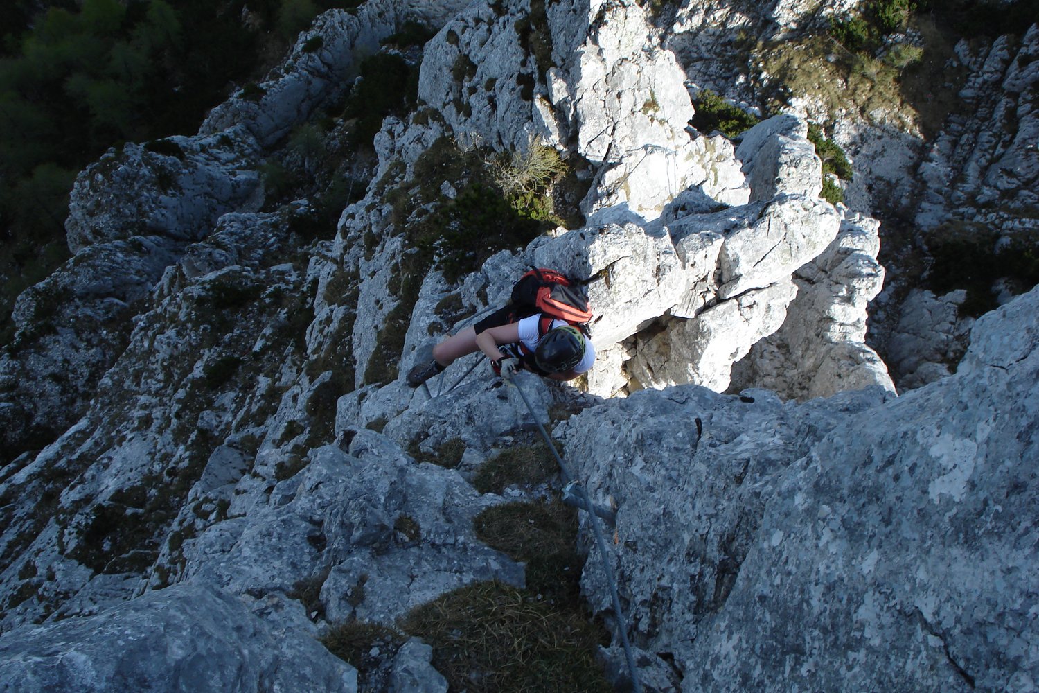 Bei Schneelage ist der Abstieg zum Einstieg des Klettersteiges gefährlich (steile Schneefelder, Absturzgefahr!).