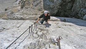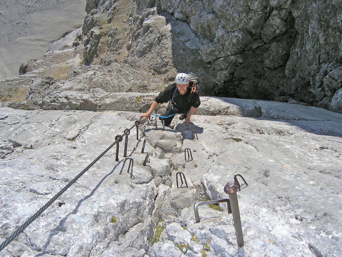 Achtung: Im Frühjahr kann auf dem Zustiegsweg bzw. auf Teilen des Klettersteiges noch Schnee liegen. Dann sind Pickel und Steigeisen mitzubringen, Bergerfahrung ist dann für eine Begehung nötig.