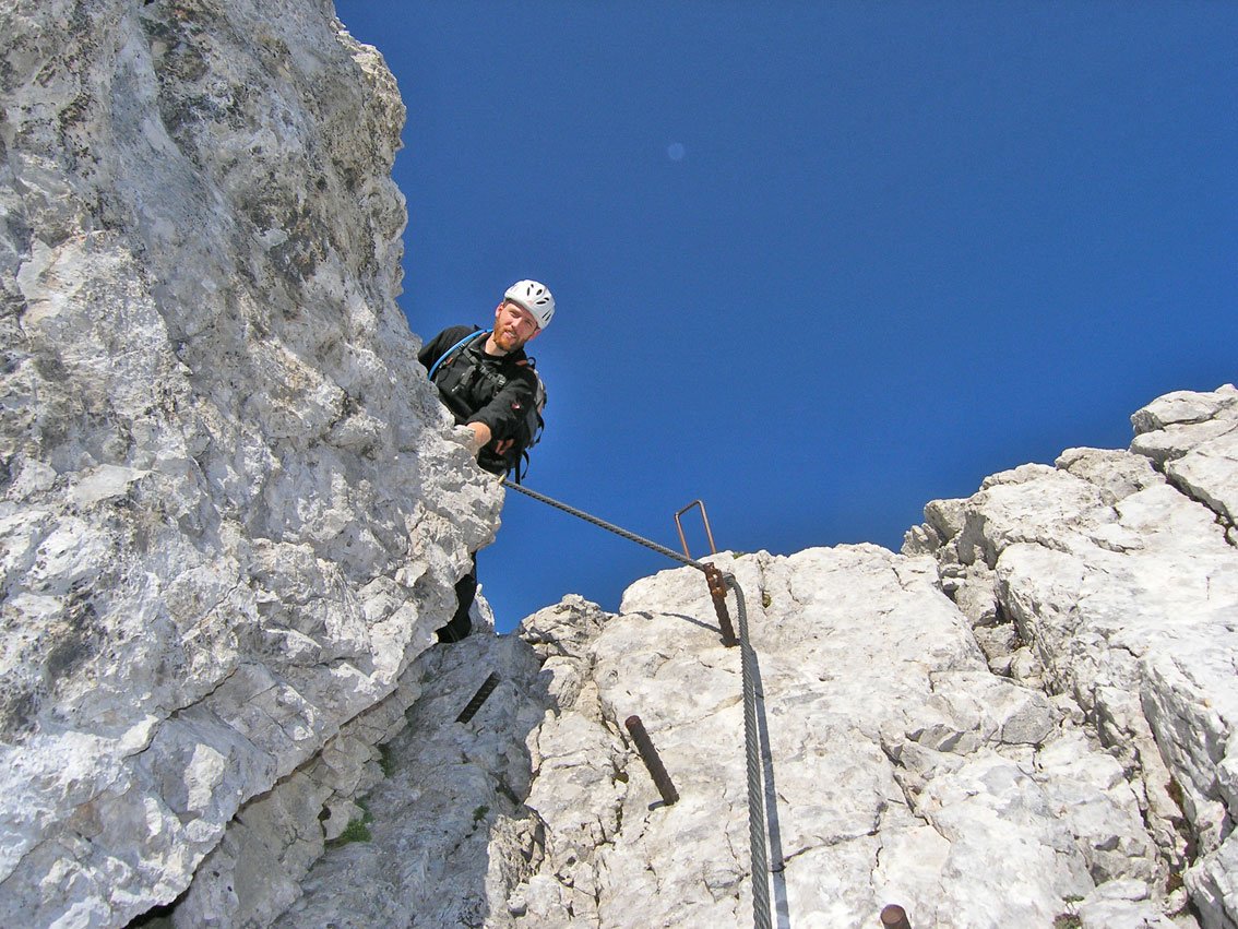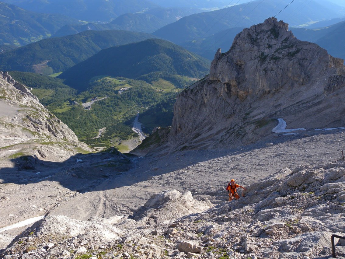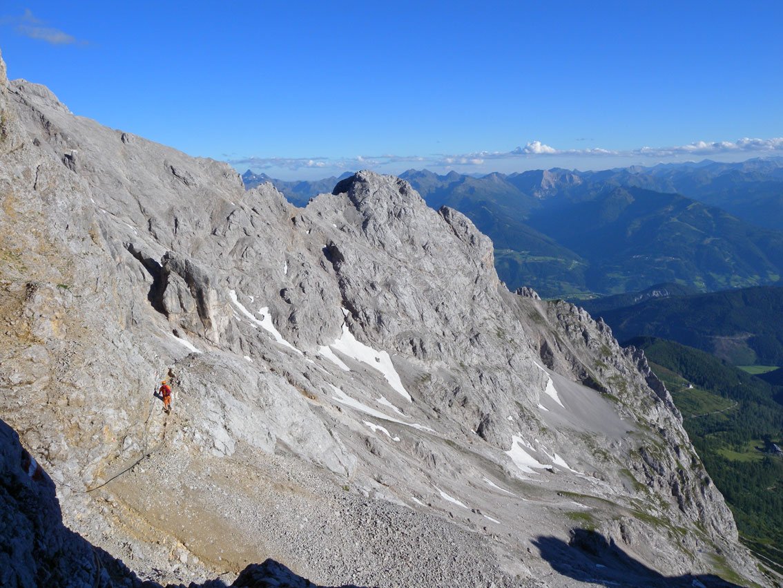 Klassischer leichter Klettersteig, der einen recht langen "Zustieg" hat und insbes. in Kombination mit dem Koppenkarstein Westgrat oder mit der Besteigung des Hohen Dachsteins eine lohnende und ausgedehnte Bergfahrt darstellt.