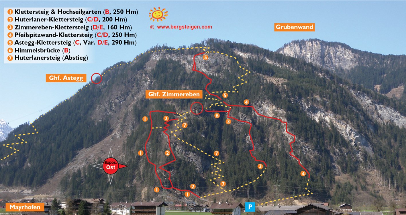 Lässt sich gut mit dem Zimmereben-Klettersteig kombinieren. Ein Notausstieg und Infopunkte an markanten Stellen des Klettersteiges sorgen für Sicherheit.