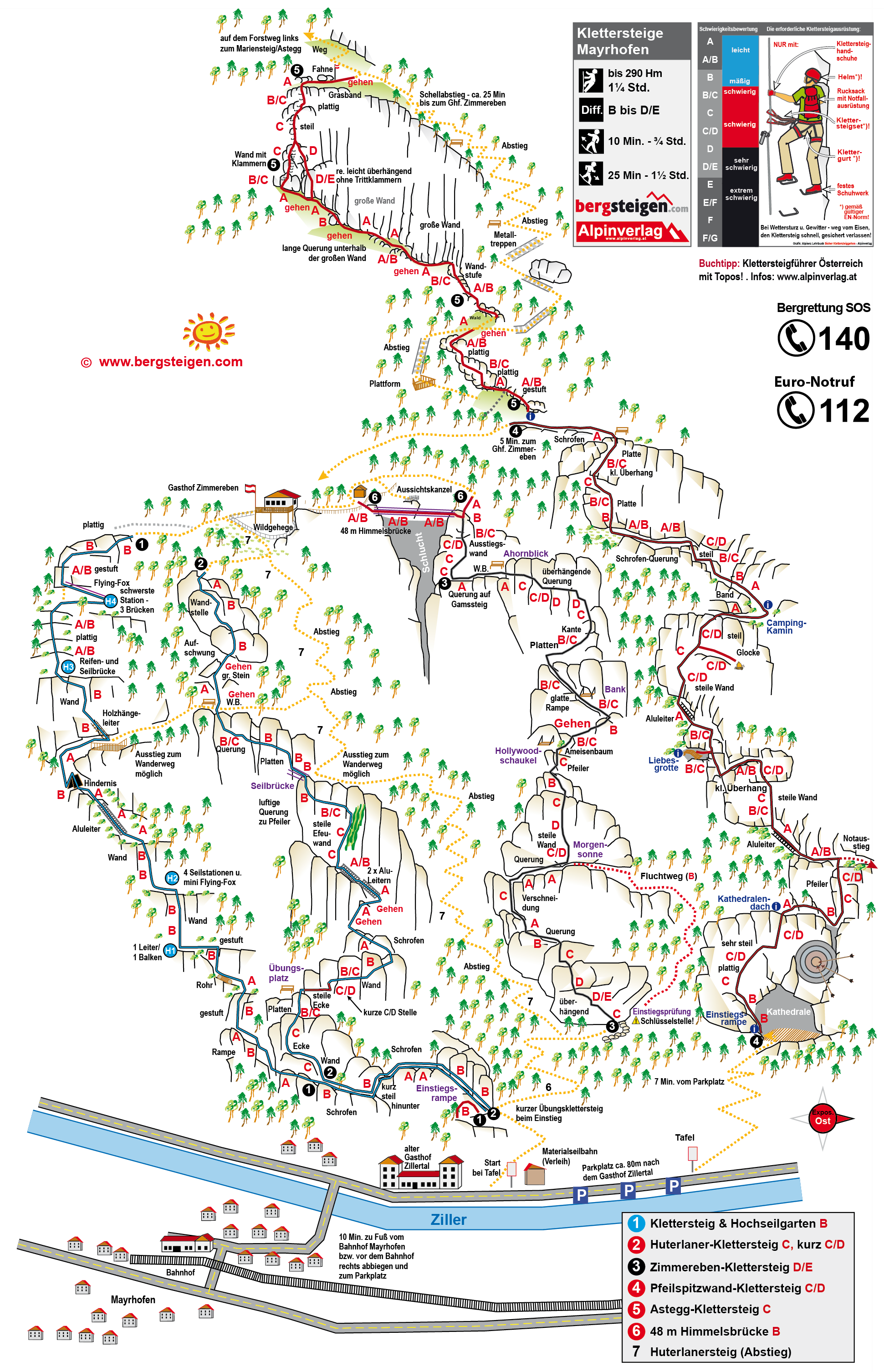 Wenige Schritte nördlich des Gasthofs Zillertal befindet sich eine ausführliche Infotafel. Dem Weg zum Einstieg folgen.