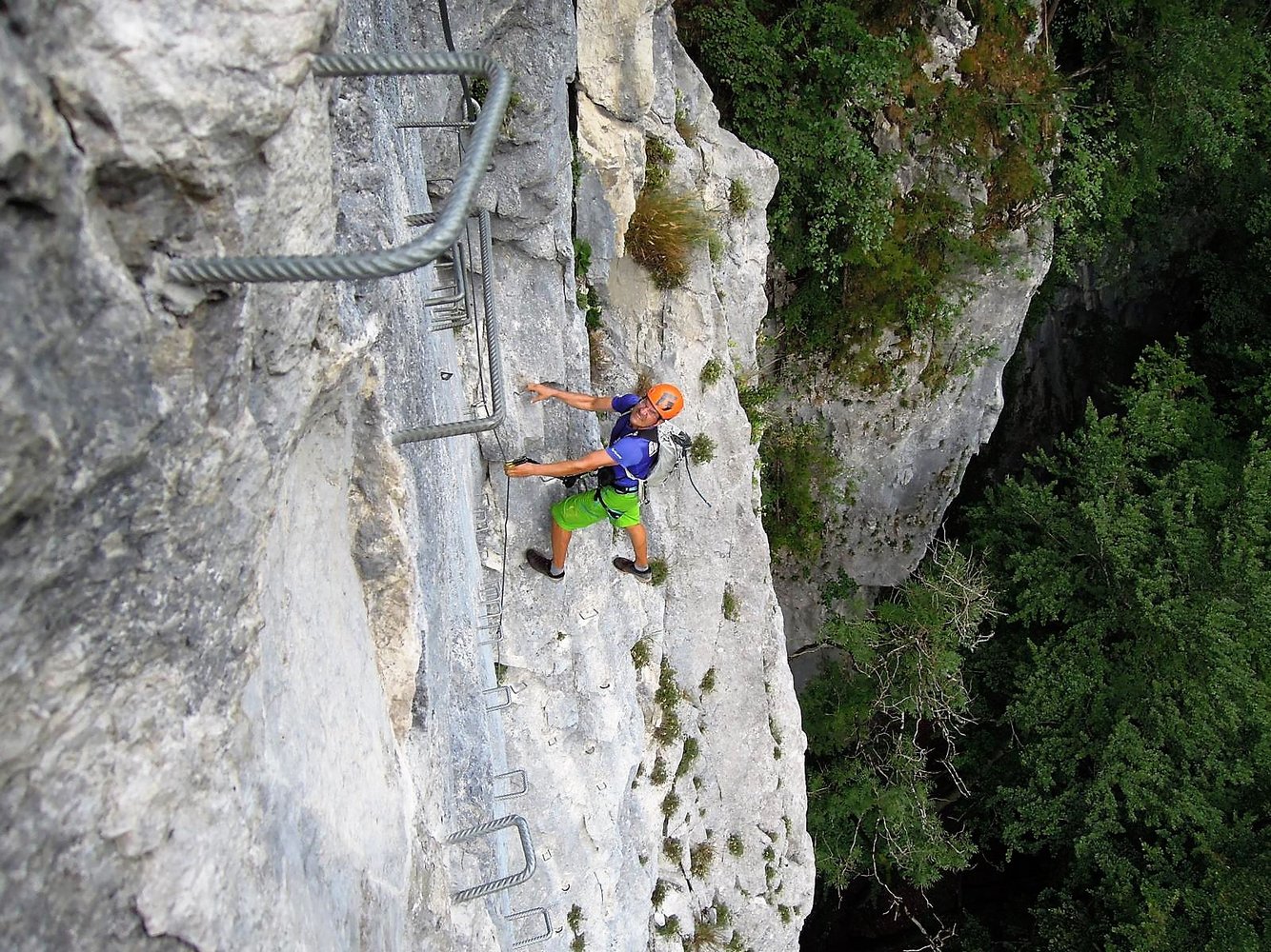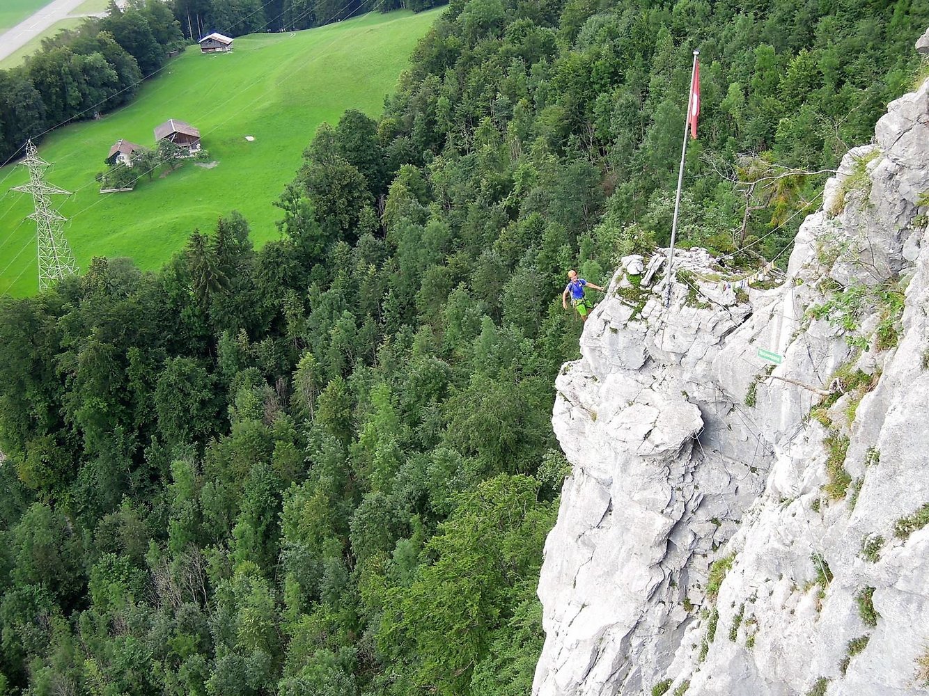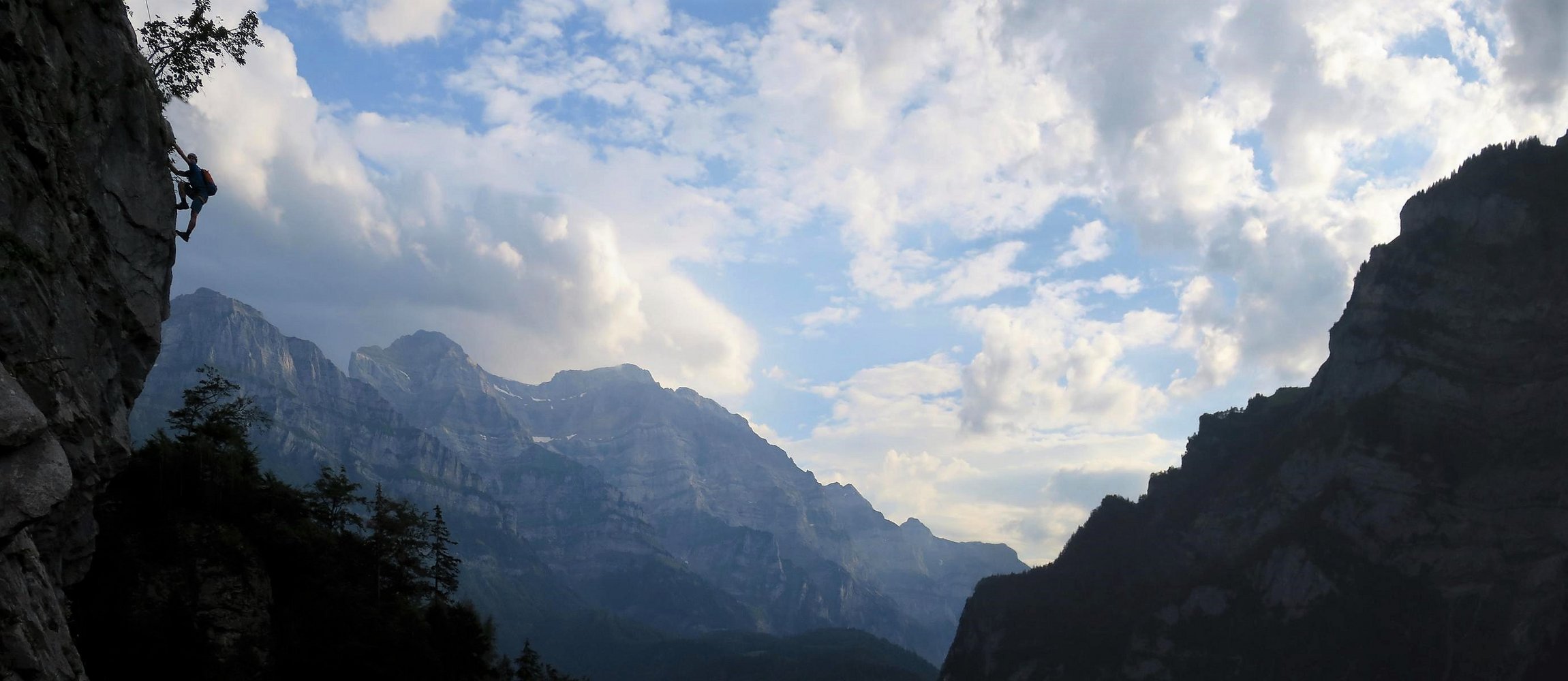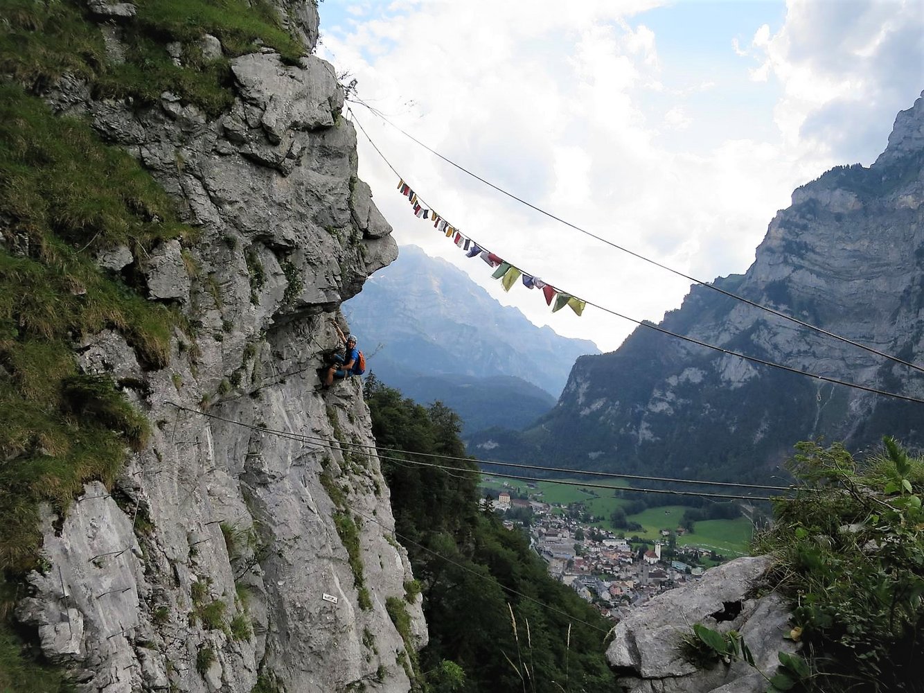 Klein, aber fein, so könnte man den rd. 200 Meter langen Indianer Klettersteig über Netstal im Kanton Glarus zusammenfassen. Ein kurzer aber extrem abwechslungsreicher Steig mit Felsspalt, Turmfahne, Tyrolienne (mit Seilrolle) und einer steilen Schlusswand. Da passen die etwas eigenwilligen Versicherungen der Marke-Eigenbau perfekt dazu. Die Talnähe und der kurze Zu- und Abstieg machen diesen Klettersteig zu einer perfekten Tour für unsicheres Wetter oder als Nachmittagspaziergang.