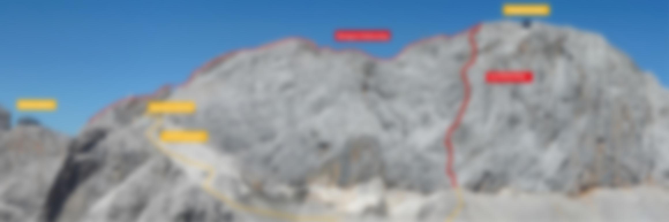 Kompl. Klettersteigausrüstung mit Handschuhen und Helm. Für schwächere Geher kurzes Sicherungsseil. Im Frühjahr evtl. Steigeisen für den Zustieg nötig!