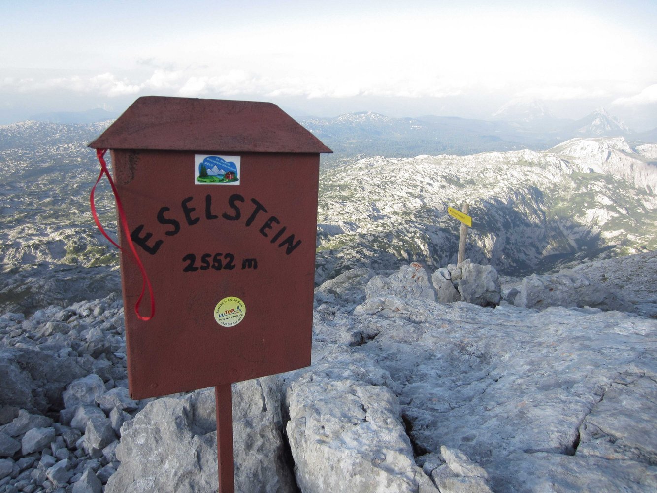 In der Ostflanke des Eselsteins über Steigspuren mit Steinmänner zum markierten Weg Nr. 674 und über die Feisterscharte zurück zum Guttenberghaus. Weiterer Abstieg wie Aufstieg