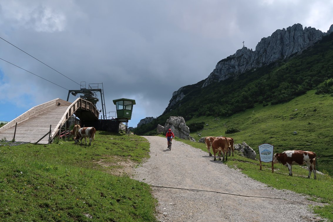 Alternativ kann man auch gut mit dem Mountainbike zur Steinlingalm hinauf fahren - beliebte MTB-Strecke, die sehr steilen Passagen sind asphaltiert. Dauer ca. 1,5 bis 2 Stunden; 850 Hm. Route: Aschau - Maisalm - Gorialm - Steinlingalm.