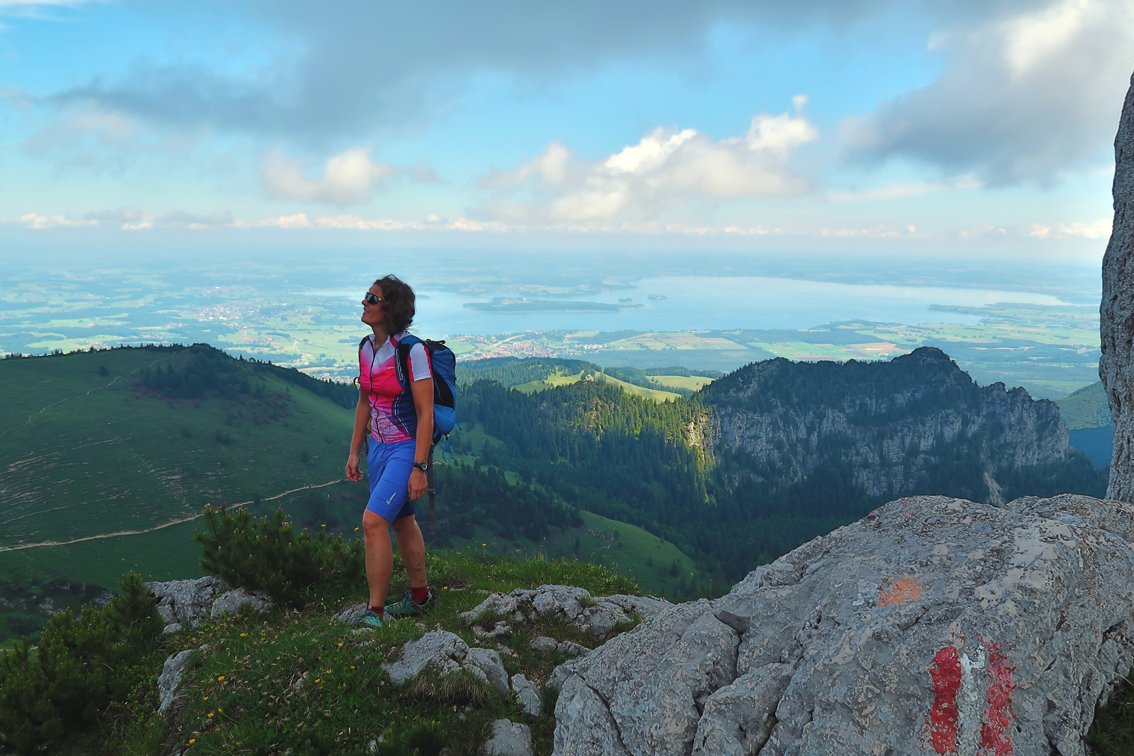 Schöner, einfacher aber kurzer Klettersteig auf die Kampenwand mit einem großartigen Ausblick auf den Chiemsee. Die "Klettersteigstellen" auf dem Ostgrat beschränken sich auf kurze Stufen im Gipfelbereich. Abstiegen wird auf dem von Wanderern stark frequentierten Normalweg - man kommt durch die eindrucksvollen "Kaisersäle" (Schlucht).
