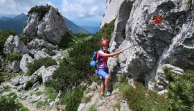 Der Aufstieg wird von vielen ohne Klettersteigausrüstung gemacht - nur für Schwächer und Kinder ist evtl. ein Klettersteigset nötig.