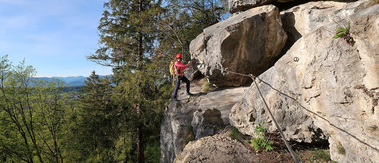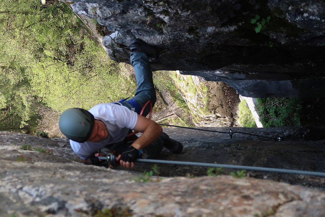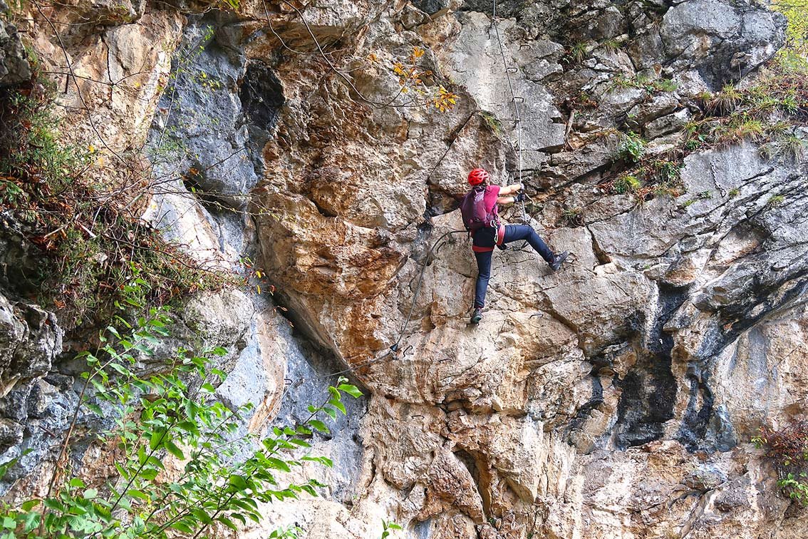 3. Umatum (B): Kurzer Klettersteig mit ausgesetzter Querung oberhalb des Kalkofens.