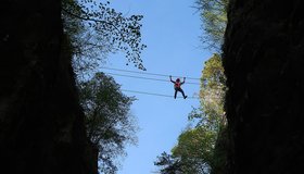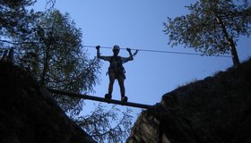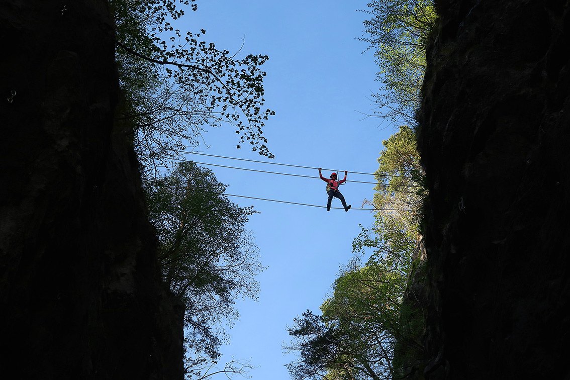 6. Seilbrücke (B): Verbindet die Felstürme Großer und Kleiner Prasvale (ausgesetzt).