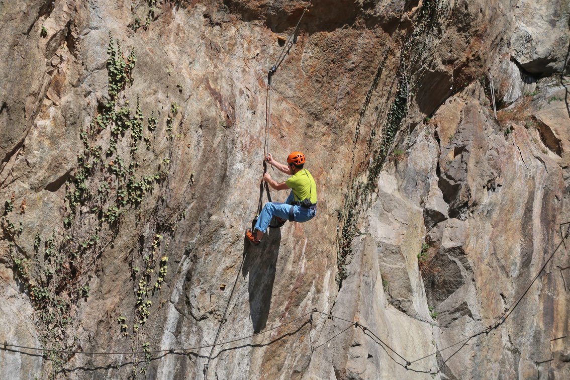 Komplette Klettersteigausrüstung und Helm. Kletterschuhe sind von Vorteil. Für schwächere Ferratisten unbedingt ein Sicherungsseil! Vor der Kreuzung gibt es 2 Umlenkhaken zum Topropesichern.