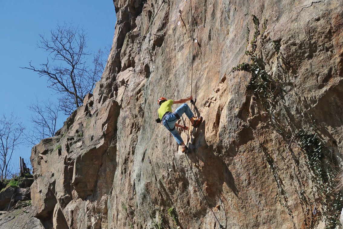 Von der Parkmöglichkeit in ein paar Schritten, vorbei an der DAV-Geschäftsstelle und dem Kletterturm, bis zur Wand.