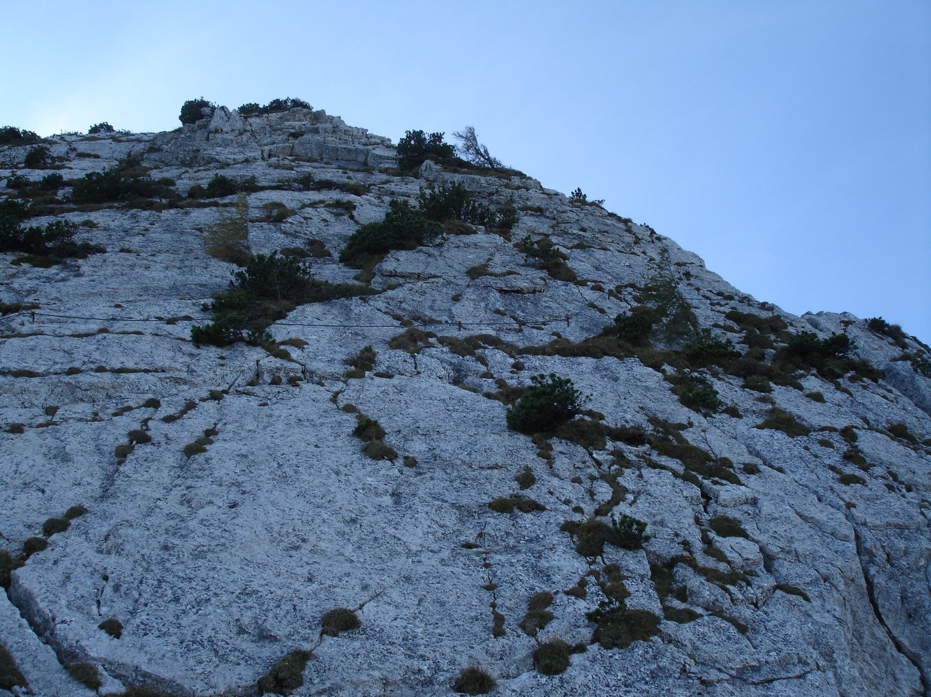 Siehe Topo, die schweren Stellen sind im unteren Teil. Man folgt fast immer der Kante bzw. dem Grat hinauf zum Gipfel.