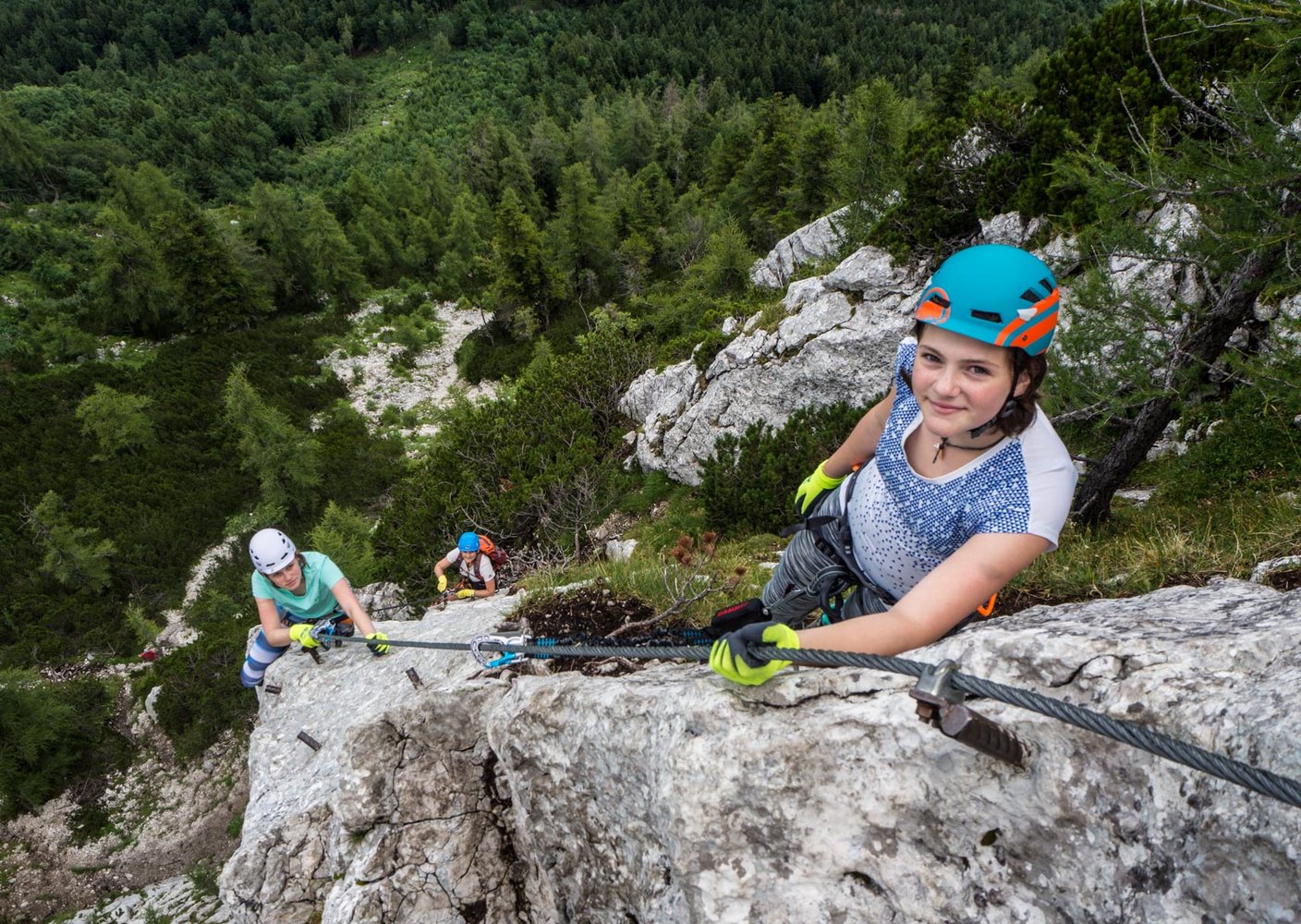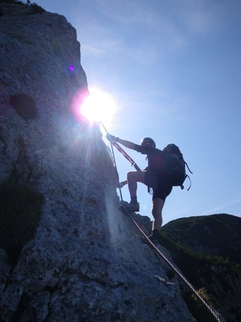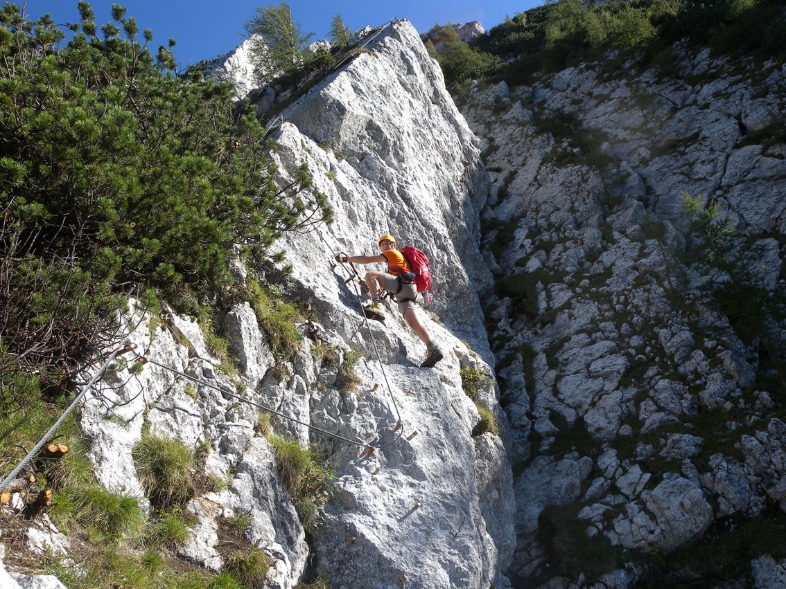 Für Kinder ist evtl. ein kurzes Sicherungsseil nötig (Zustieg und Klettersteig).